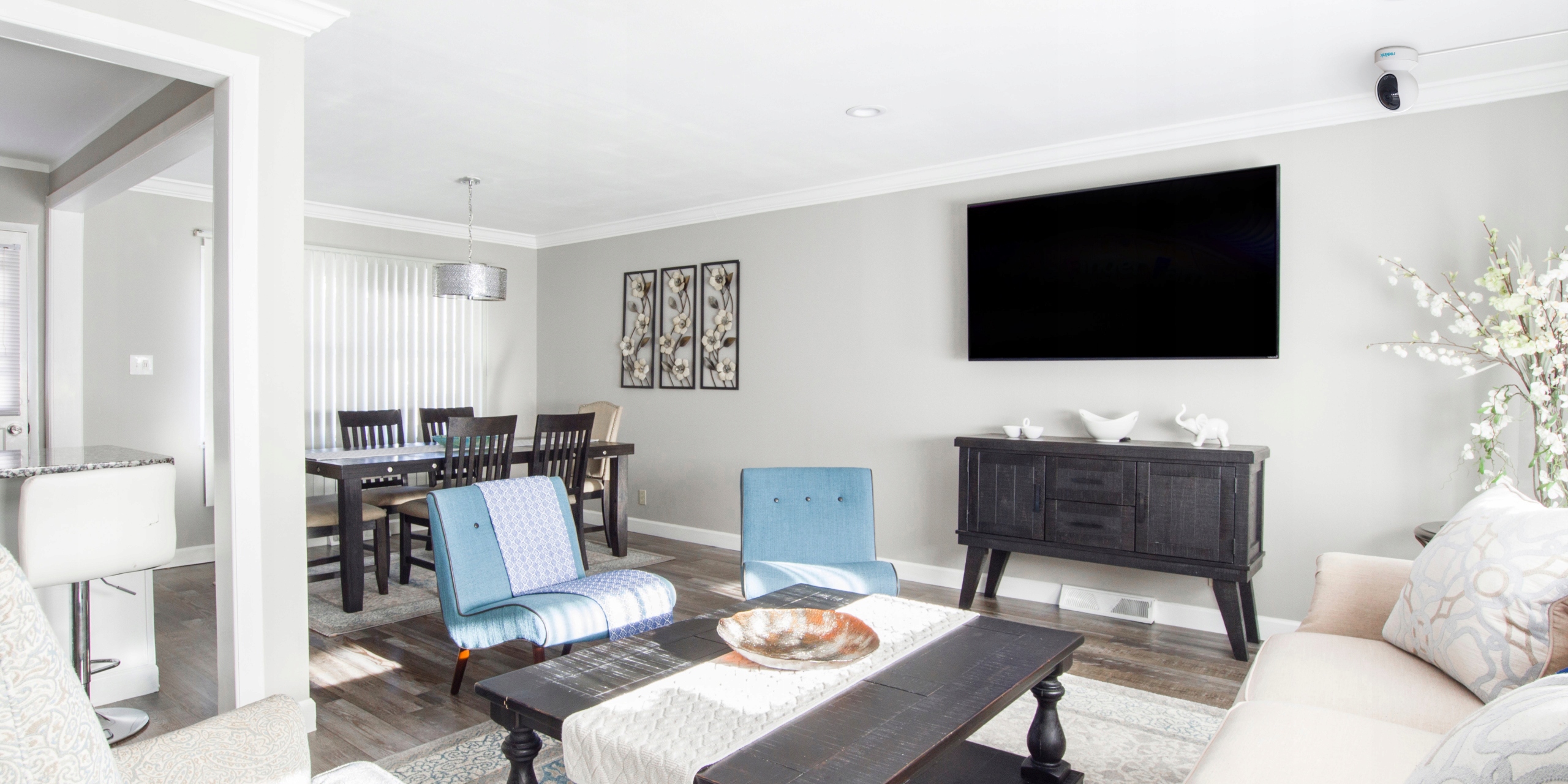 Reolink E1-V2, камера з поворотом на 355° по горизонталі та 50° по вертикалі. Зніміть дітей, які вештаються по дому. Неслухняні домашні тварини бігають по дому, дивіться вітальню та їдальню за допомогою лише однієї камери Reolink E1-V2.