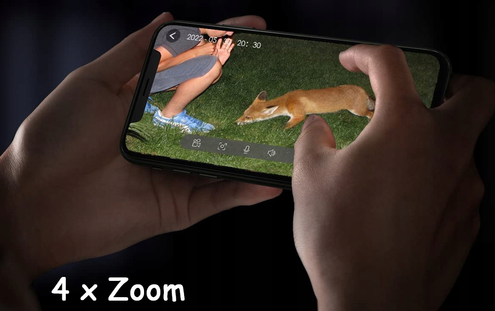 Сонячну камеру спостереження можна обертати горизонтально на 355° та вертикально на 120°. Керуючи камерою дистанційно через APP, можна досягти всіх кутів навколо камери. Зовнішня сонячна камера спостереження має широкий кут огляду 130° і функцію 4-кратного цифрового масштабування, ви можете збільшити відеоекран, щоб побачити більше деталей.