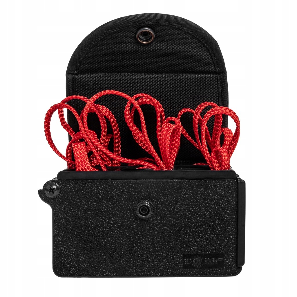 Кобура, призначена для дев’яти одноразових текстильних наручників типу HT-01, легка та міцна завдяки використанню поліаміду. Якщо підняти клапан, можна легко та швидко отримати наручники, видаливши виступаючу частину.