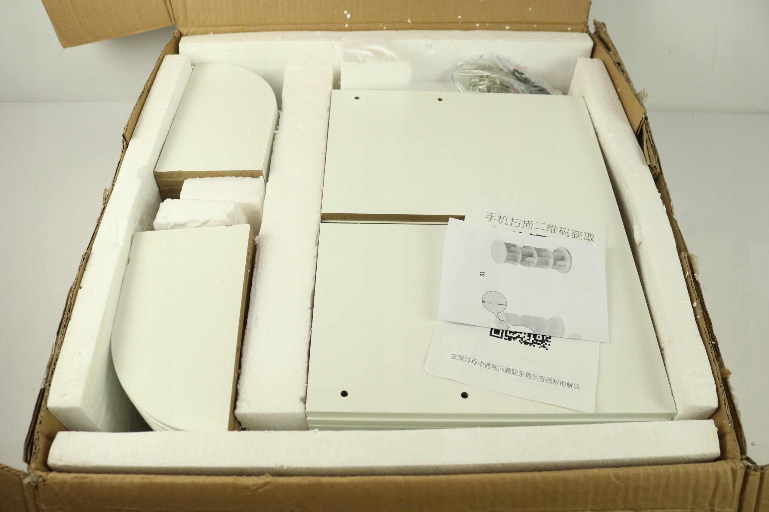 після повернення споживача. Краї меблів мають пошкодження. Мені здається, що кругла тарілка з 4 пробуреними отворами повинна бути 1, а є 2, тоді як 8 - 4, а є 3. Тому вам доведеться самостійно просвердлити отвори. Я не впевнений, що монтажний комплект завершений. Фотографії, розміщені в кінці аукціону, ілюструють фактичну умову продукту