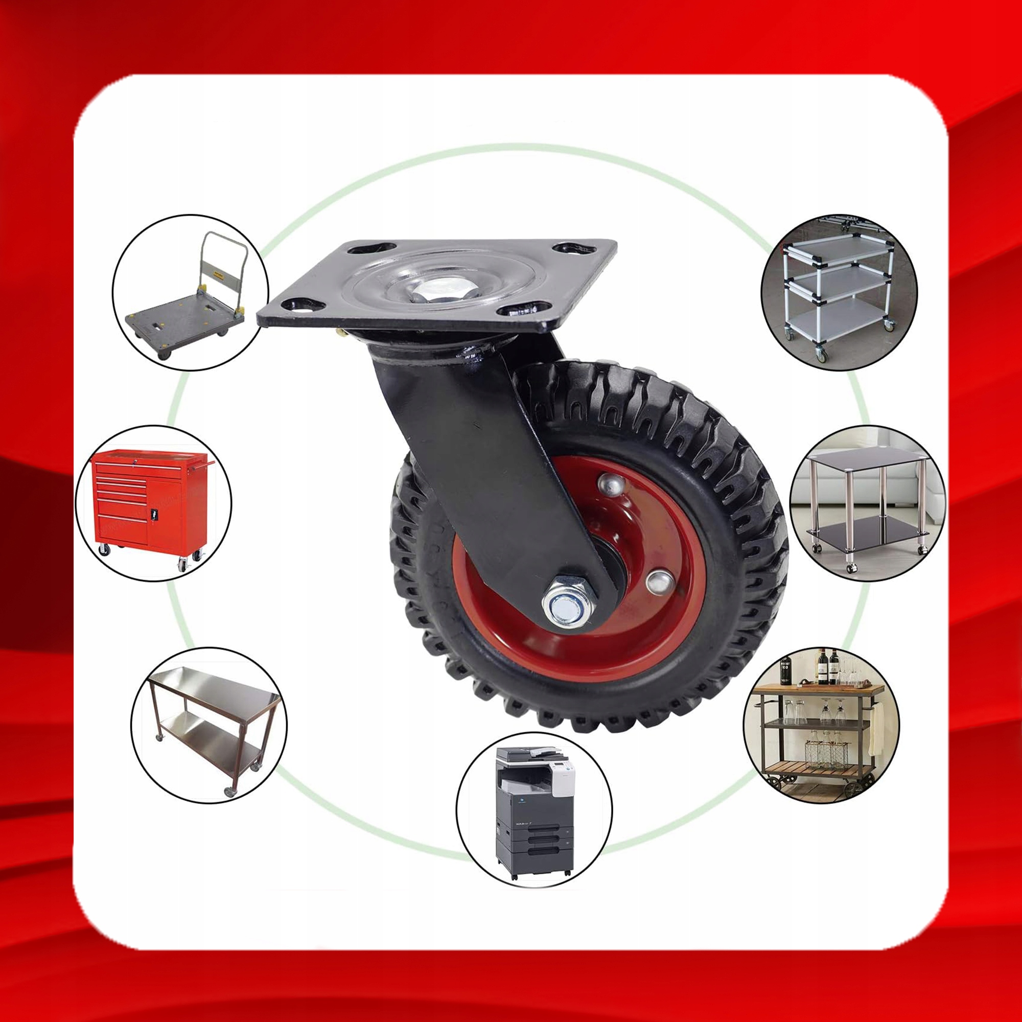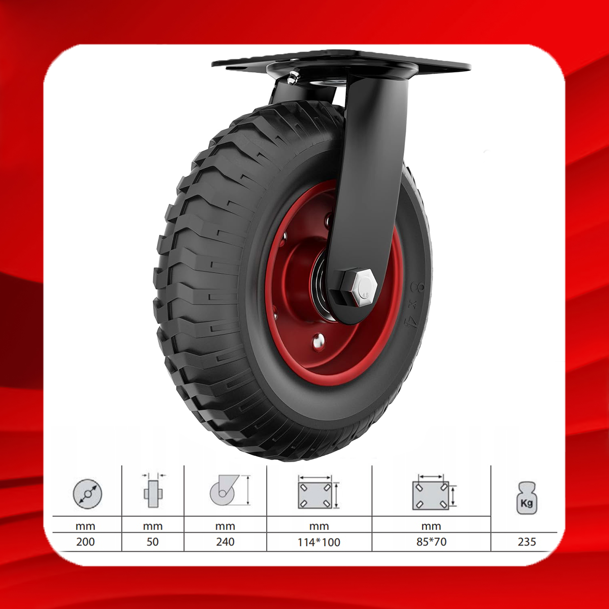 Високоякісне поворотне колесо діаметром 200 мм є надійним рішенням для промислових, майстерень та транспортних застосувань. Поєднання металевої конструкції та безкамерної гумової шини забезпечує довговічність, стабільність і комфорт використання навіть за великих навантажень.