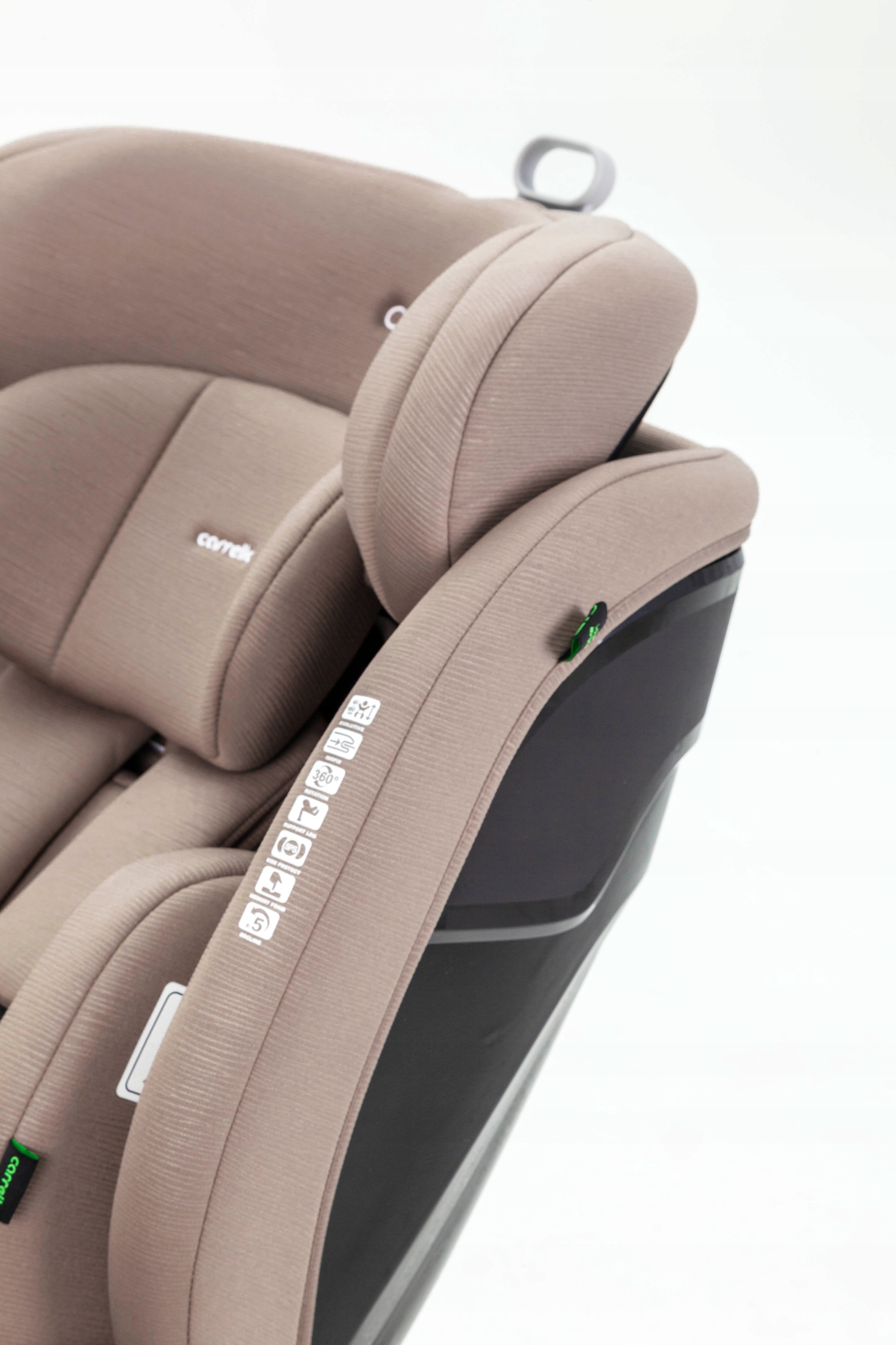 Відповідає останньому стандарту сертифікації в європейських країнах - I-SIZE R129/03, оснащена сучасними технологіями, що забезпечують безпеку, комфорт і простота використання. Має захист від бокового удару (SPS), систему Isofix, опору та обертання на 360°.