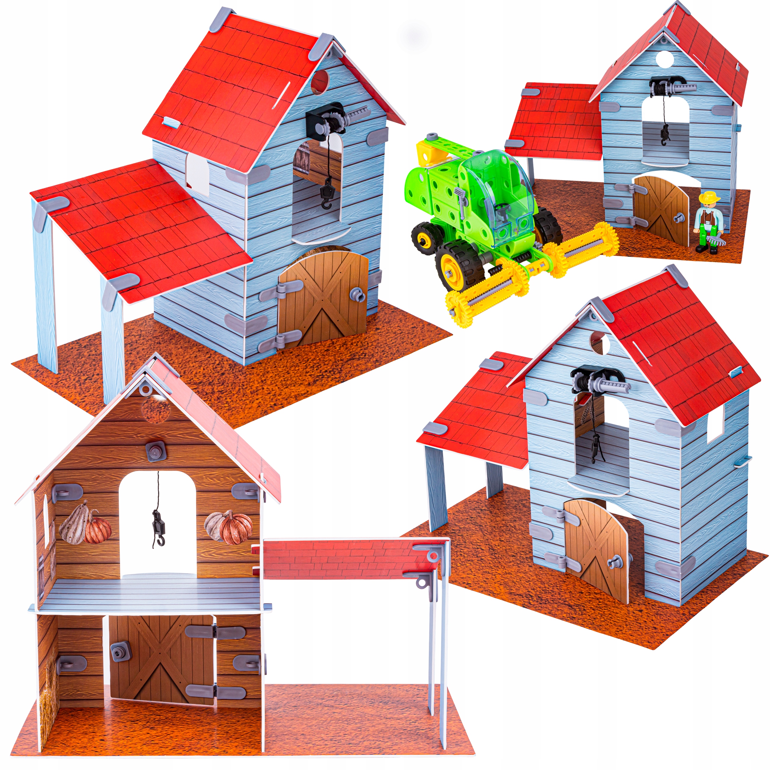 Жодна ферма не обійдеться без хорошого сараю, де можна сховати обладнання та аксесуари. У сараї є дах, наприклад, для трактора, двері, що відкриваються та закриваються, а також поворотний гачок для підтягування різних речей на перший поверх. Яскраві кольори будівлі та цікава графіка зсередини ефективно заохочують до веселощів.