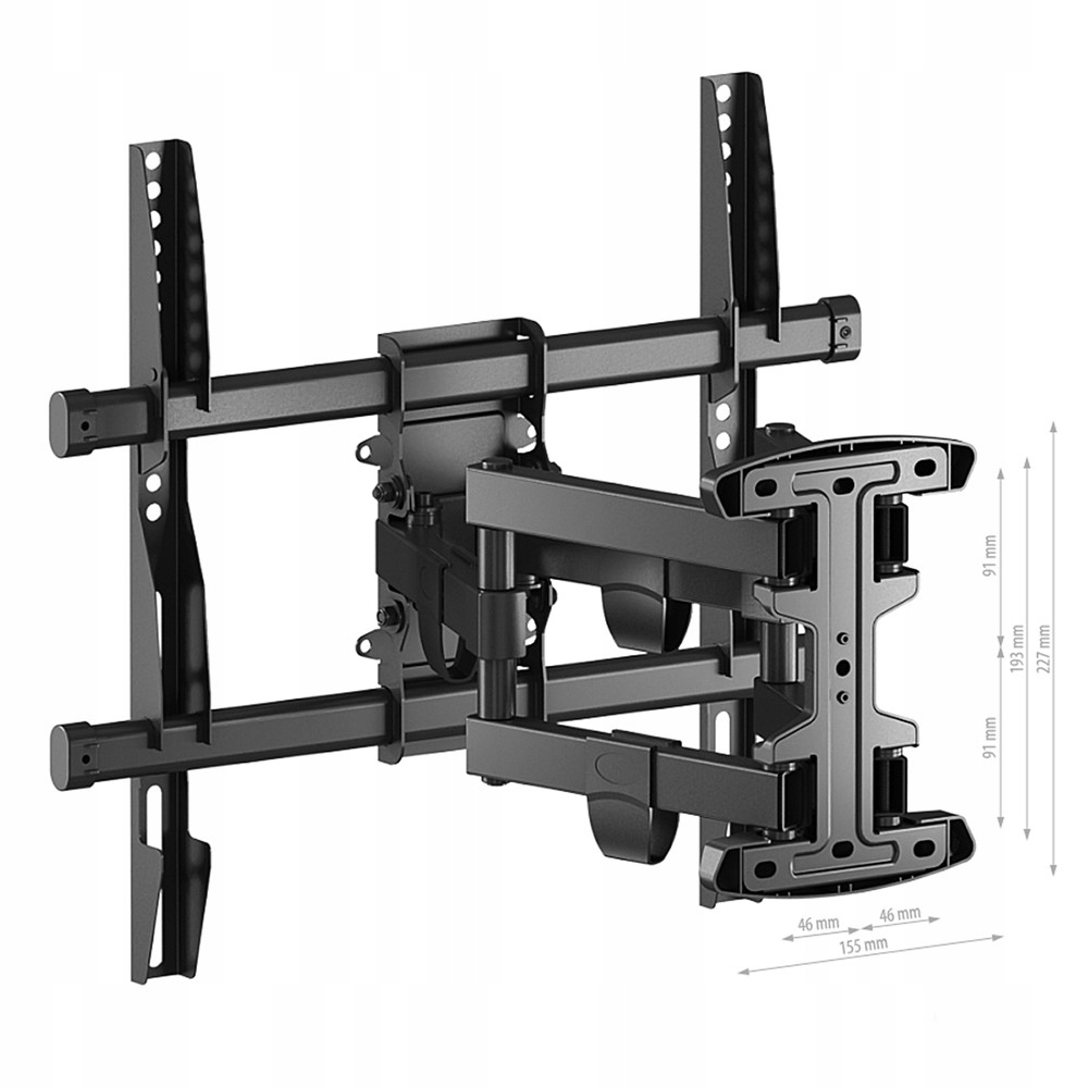 Тримач має два складні кронштейни, що дозволяє регулювати відстань телевізора від стіни, а також тримач дозволяє регулювати положення пристрою в трьох площинах.