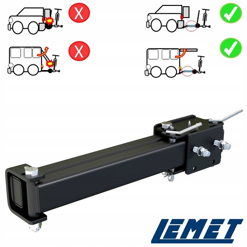 Відповідь - модуль Lemet Swing . Це інноваційне рішення, яке усуне необхідність зняття важкого велосипедного багажника з буксирування, , коли вам потрібен доступ до багажника під час подорожі. Модуль встановлений безпосередньо на гачку, і після розблокування механізму його можна повернути до користувача, як і двері . Це просте і геніальне рішення полегшує життя для всіх, хто любить активний відпочинок і не розлучається з велосипедами.