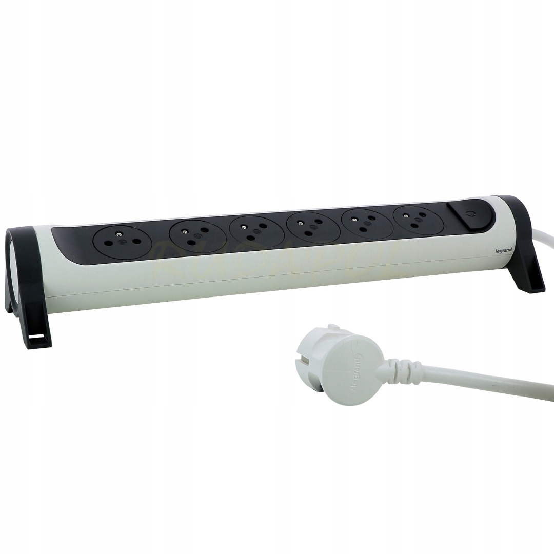 - 6 «плоських» розеток 2P+Z (5 встановлених під кутом 45° і 1 відсунута під кутом 90° для підключення, наприклад, джерела живлення без блокування сусідньої розетки)