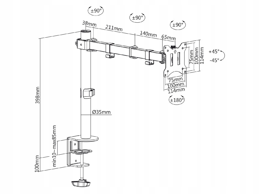 - Ми можемо легко прикріпити стандартний екран до тримача VESA: 75x75, 100x100 мм