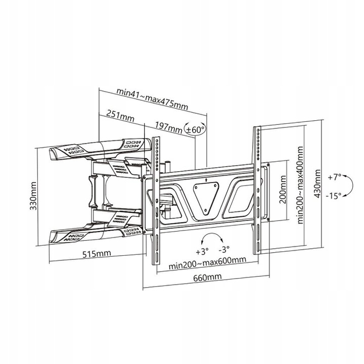 - Регульована відстань від стіни: від 41 мм до 475 мм