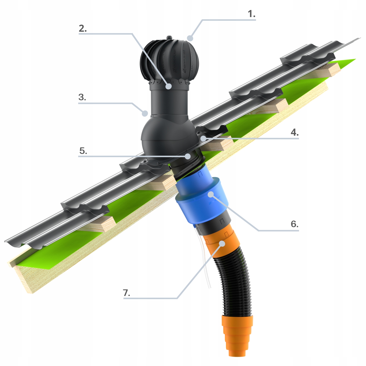 Камін використовується для гравітаційної вентиляції, використовується як завершальний елемент вентиляційного каналу. Камін ефективно відводить надлишок водяної пари з приміщень будівлі.