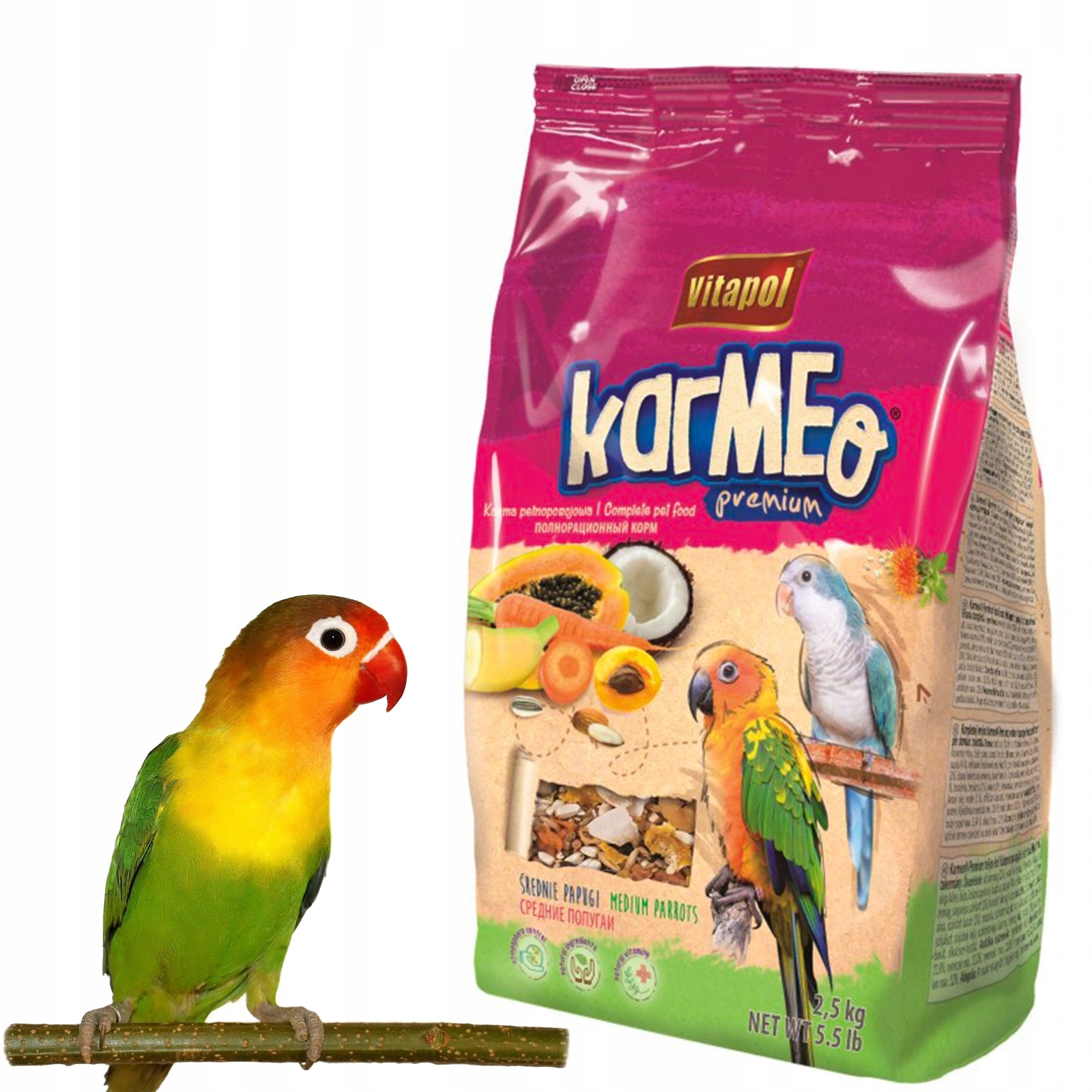 ПОВРАЦІЙНИЙ КОРМ ДЛЯ СЕРЕДНІХ ПАПУГ 2,5 КГ