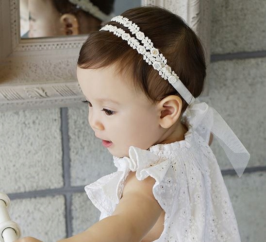 Чудова пов'язка для дівчинки з ніжного мережива. Пов'язка адаптується до форми голови дитини. Пов'язка без тиску