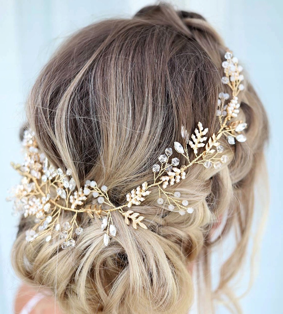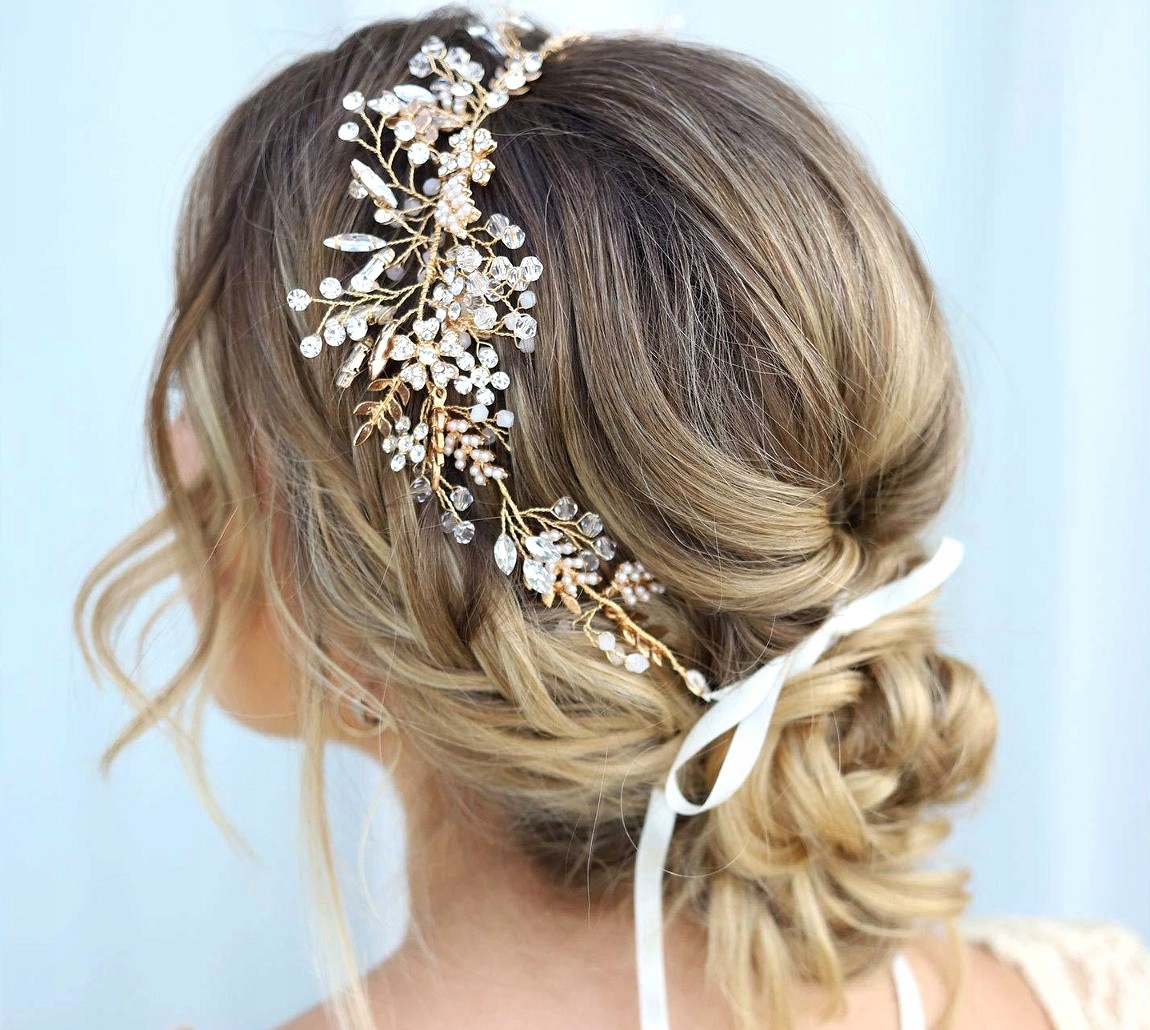 Пов'язка-корона на весілля з золотою діадемою і гірляндою зі страз