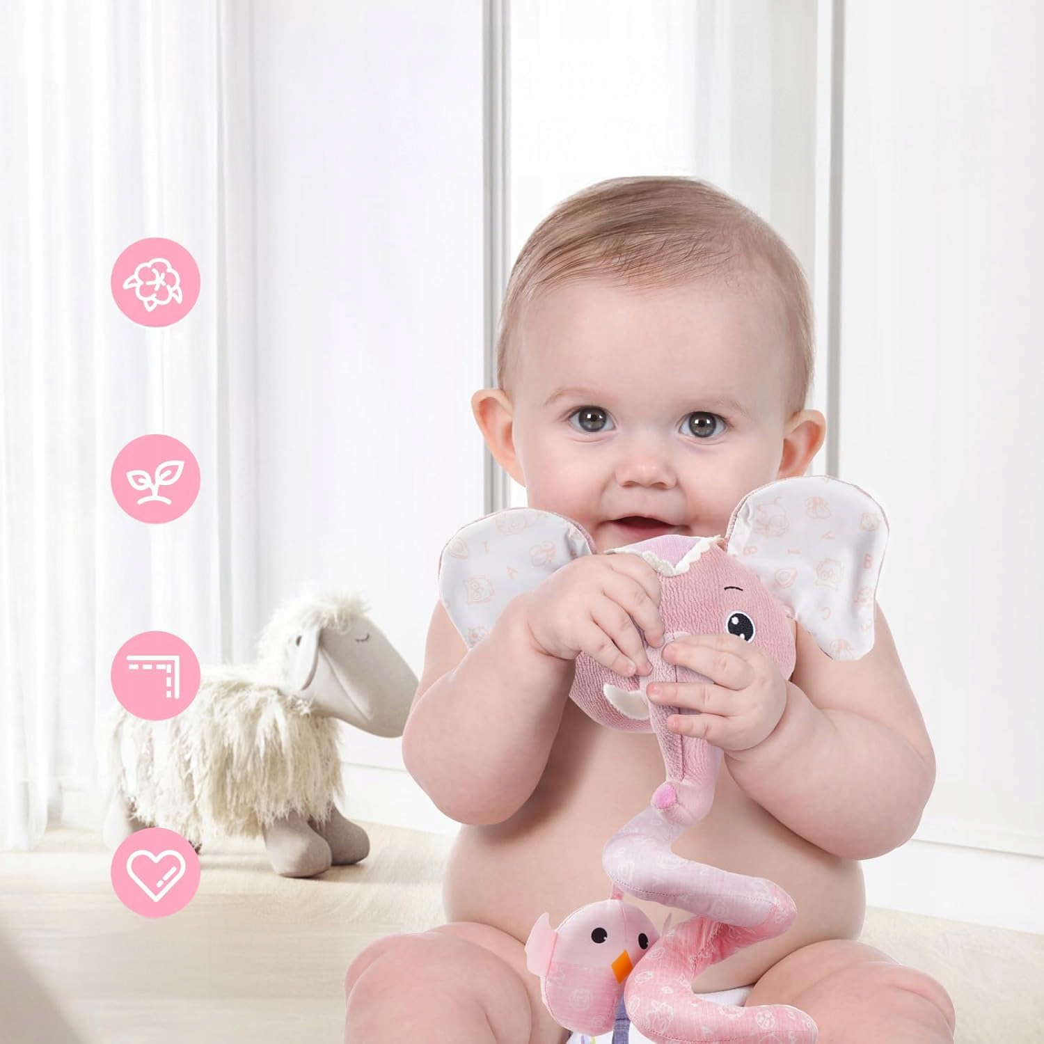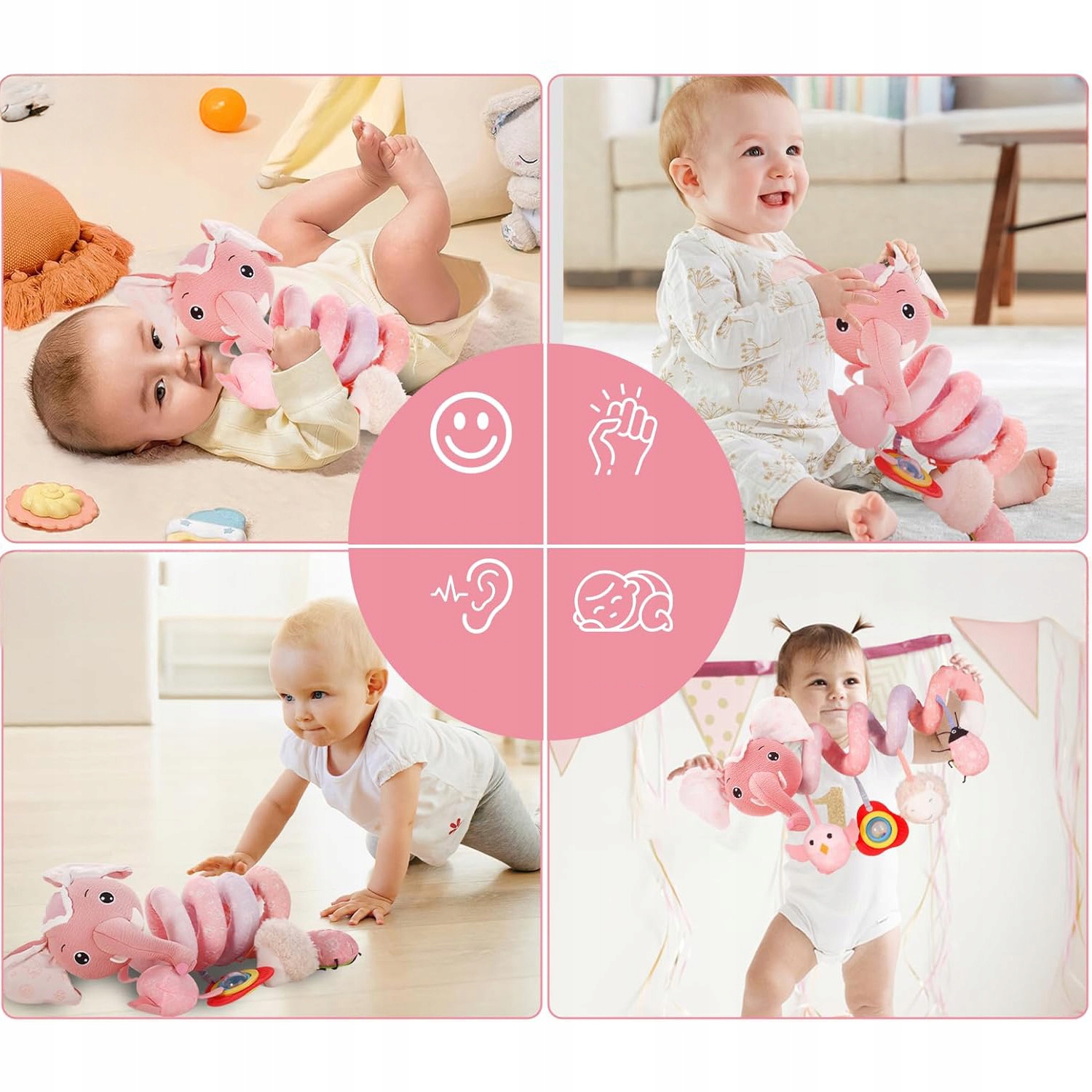 🐘🐘ІГРАШКА У ФОРМІ АВТОКРІСЛА ДЛЯ ДИТЯЧІВ, СПІРАЛЬНА, ПЛЮШЕВА, ПІДВІСНА, ДЛЯ КОЛЯСКИ, ЛІЖЕЧКА, З МУЗИЧНОЮ ШКАТУЛКОЮ, БРІСКАЛКОМ І БРЯСКАЛЬЦЯМИ (РОЖЕВІ СЛОН)🐘🐘