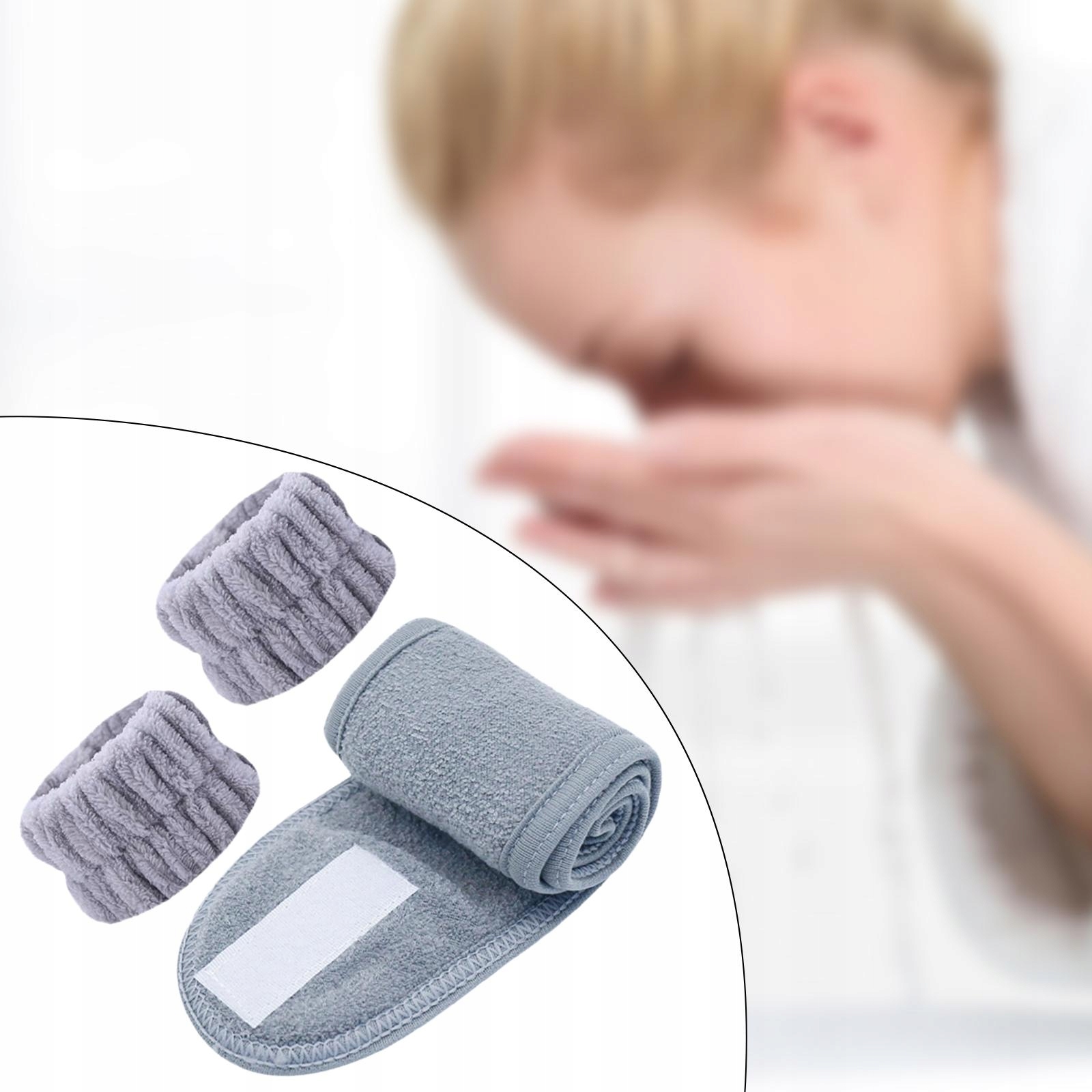 3x пов'язка на голову SPA Пов'язка на голову для очищення обличчя Браслет Пов'язка на рушник Пов'язка на голову для миття обличчя Сірий
