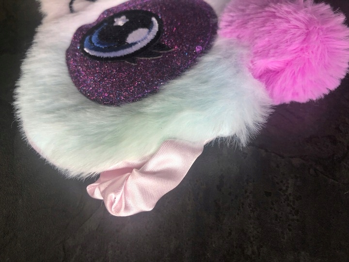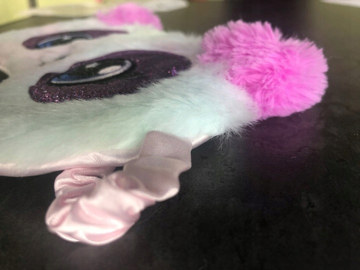 Маска виготовлена з різнокольорового плюшу - довільне розташування кольорів веселки.