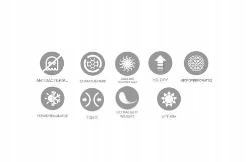 Домінуючий матеріал Climatherm® забезпечує: терморегуляцію, швидке вбирання та випаровування поту, усунення неприємних запахів. Захист від UVA-променів, антибактеріальний захист і високий комфорт, без потертостей і подразнень.