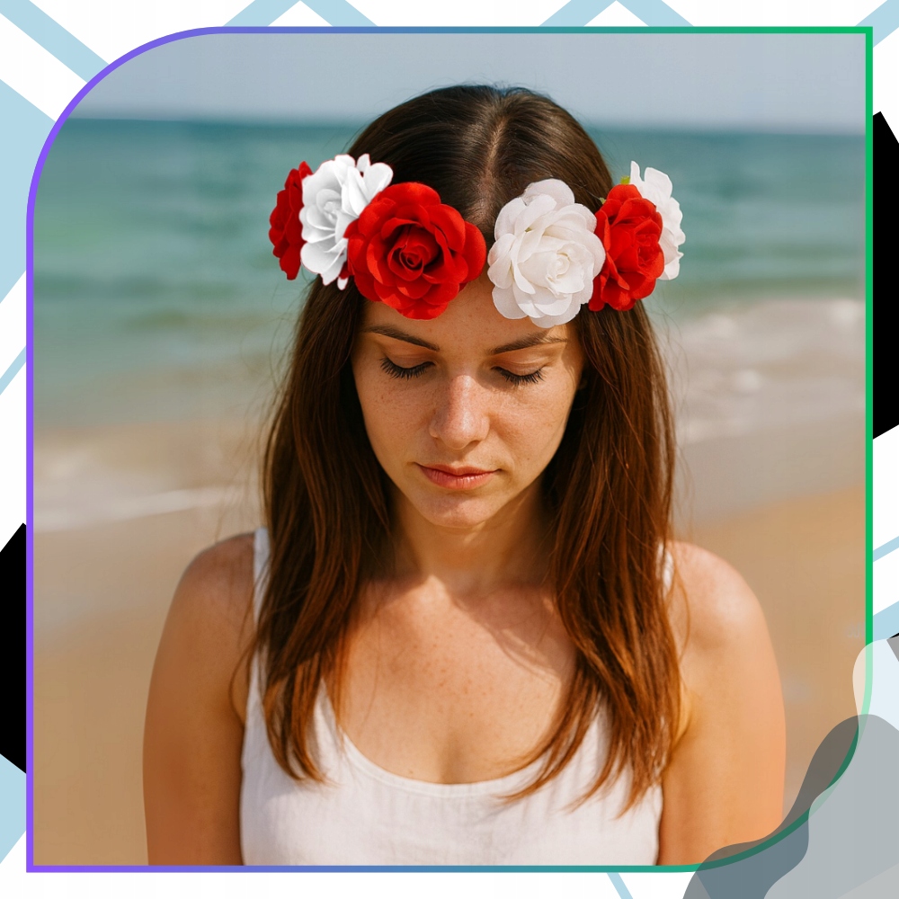 ✅ Поєднання білого та червоного з делікатними акцентами зеленого робить цю пов’язку з квітами в стилі бохо випромінювати свіжість та енергію. Біло-червоний колірний мотив ідеально підходить для підтримки збірної Польщі, а також підходить для інших випадків - від фестивалів, дівич-вечорів до фотосесій і весільних святкувань.