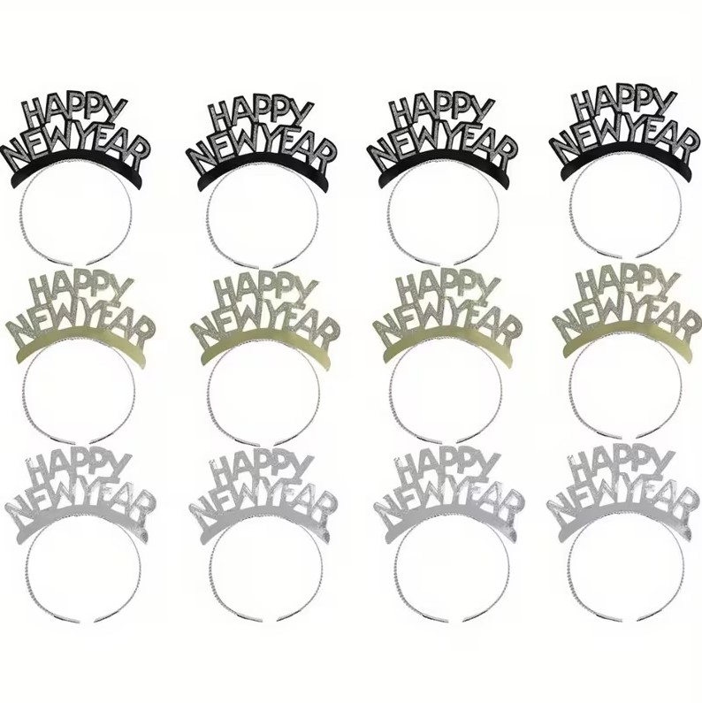 ПОВ'ЯЗКИ НА ГОЛОВУ НОВОРІЧНІ ДЛЯ ДОРОСЛИХ ДІТЕЙ HAPPY NEW YEAR 12 ШТ.