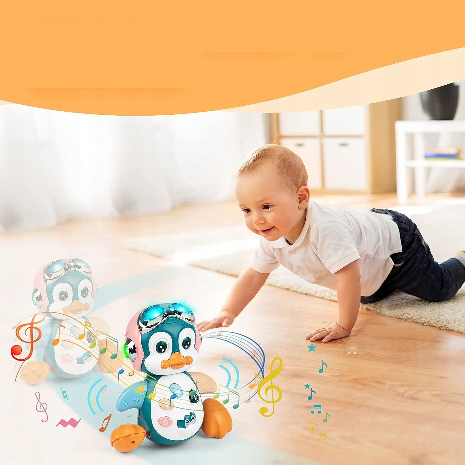 Музична іграшка Penguin, придатна для дітей віком від 6 до 12 місяців, буде рухатися музикою та світитися світлом у режимі "Go". Це заохотить дитину переслідувати та повзати. Ідеально підходить для немовлят для розвитку моторних навичок та навчання, як контролювати великі м’язи, які дозволяють повзати, ходити і збалансувати своє тіло під час гри. Ідеальна подарункова іграшка для дитини у віці 1-2 років. Це дивовижна іграшка для дітей віком від 6 9 12 18 місяців!