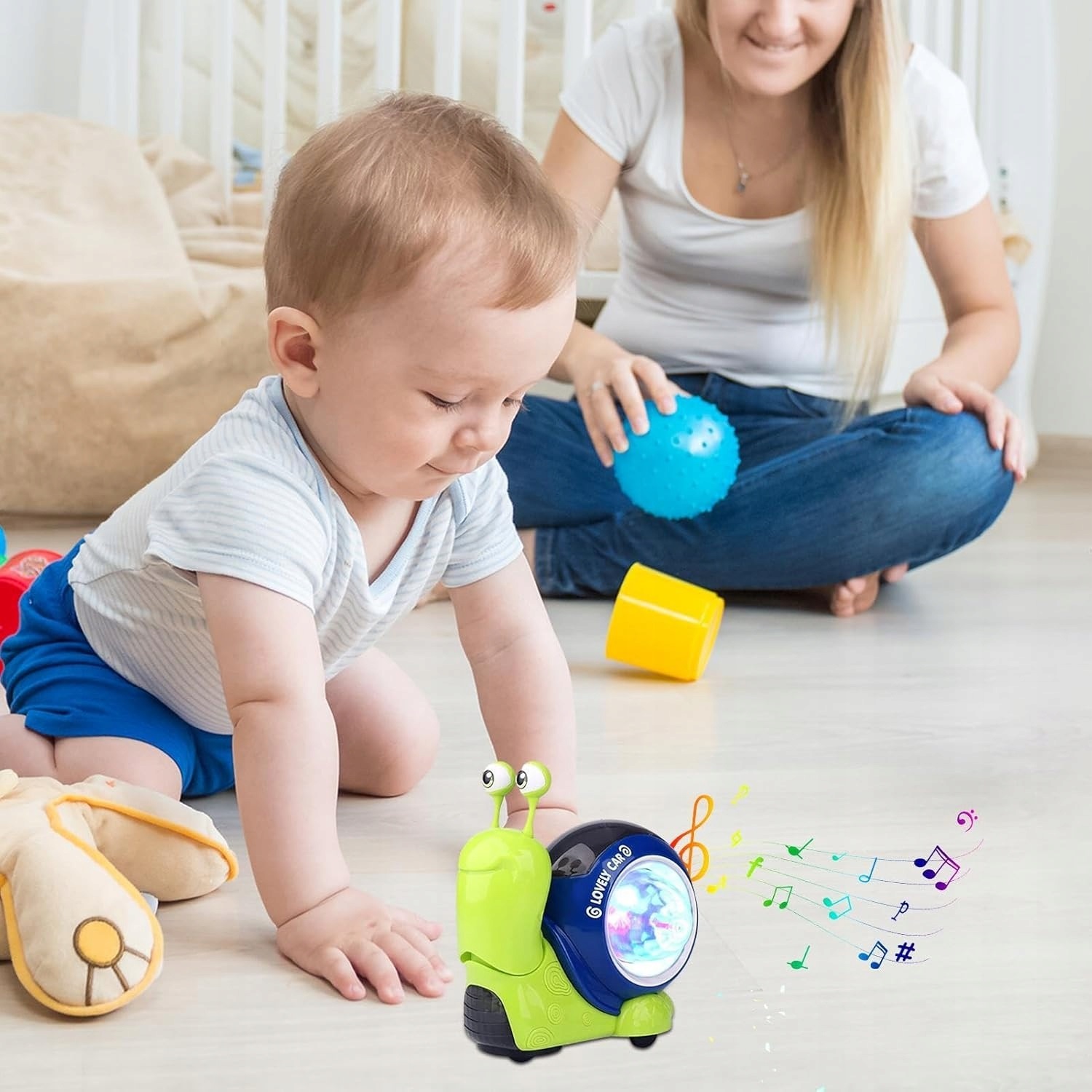 Завдяки вбудованому світлодіодному освітленню та музичному плеєру цей танцюючий равлик світиться різними кольорами та грає жваву музику, яка підтримує сенсорний розвиток немовлят.