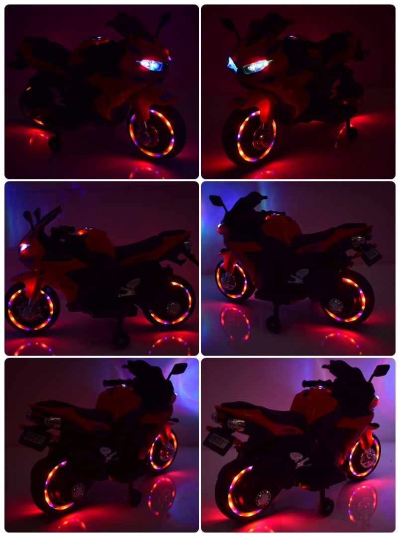 Панель зі звуками (звуки пуску мотоцикла) з входом USB і AUX і підсвічування автомобіля (ліхтарі та колеса, що світяться) зроблять веселощі ще приємнішим і різноманітнішим.