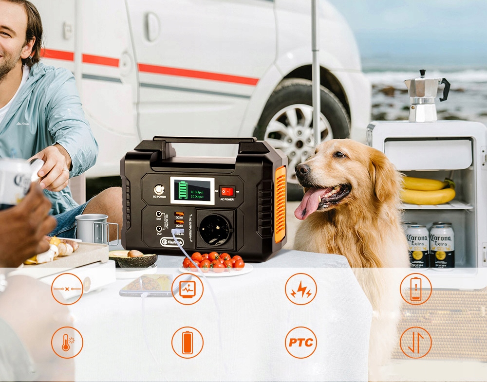 Станція живлення Flashfish оснащена літієвим акумулятором, яку можна зарядити за допомогою сонячної панелі/розетки для стіни/автомобіля 15-24 В що забезпечує більшу ширину дорогу. Багатофункціональний, дуже яскравий РК -екран, що пропонується з використанням, оснащений екраном / використанням / виводом змінного / постійного струму навіть при поганому світлі.