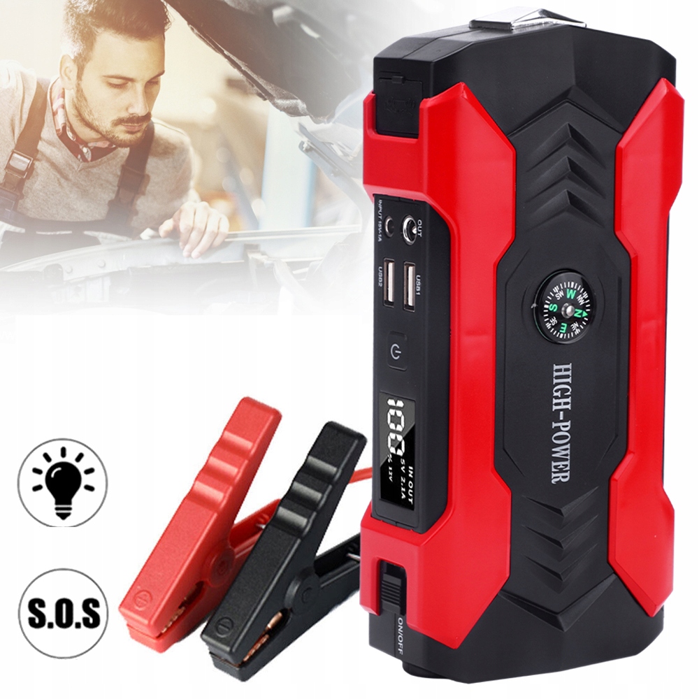 - Наш портативний автомобільний зарядний пристрій Jump Starter Power Bank ємністю 28000 мАг може заряджати ваші пристрої швидше через вихідні порти USB 3 в 1 (5 В–2,1 А | 19 В/16 В/12 В) і сумісний майже з усіма USB зарядні пристрої, включаючи мобільні телефони, планшети, цифрові камери та інші електронні пристрої. Автомобільний зарядний пристрій можна заряджати за допомогою штепселя 15 В-1 А, що входить до комплекту, і з’єднувального кабелю прикурювача 12 В-1 А