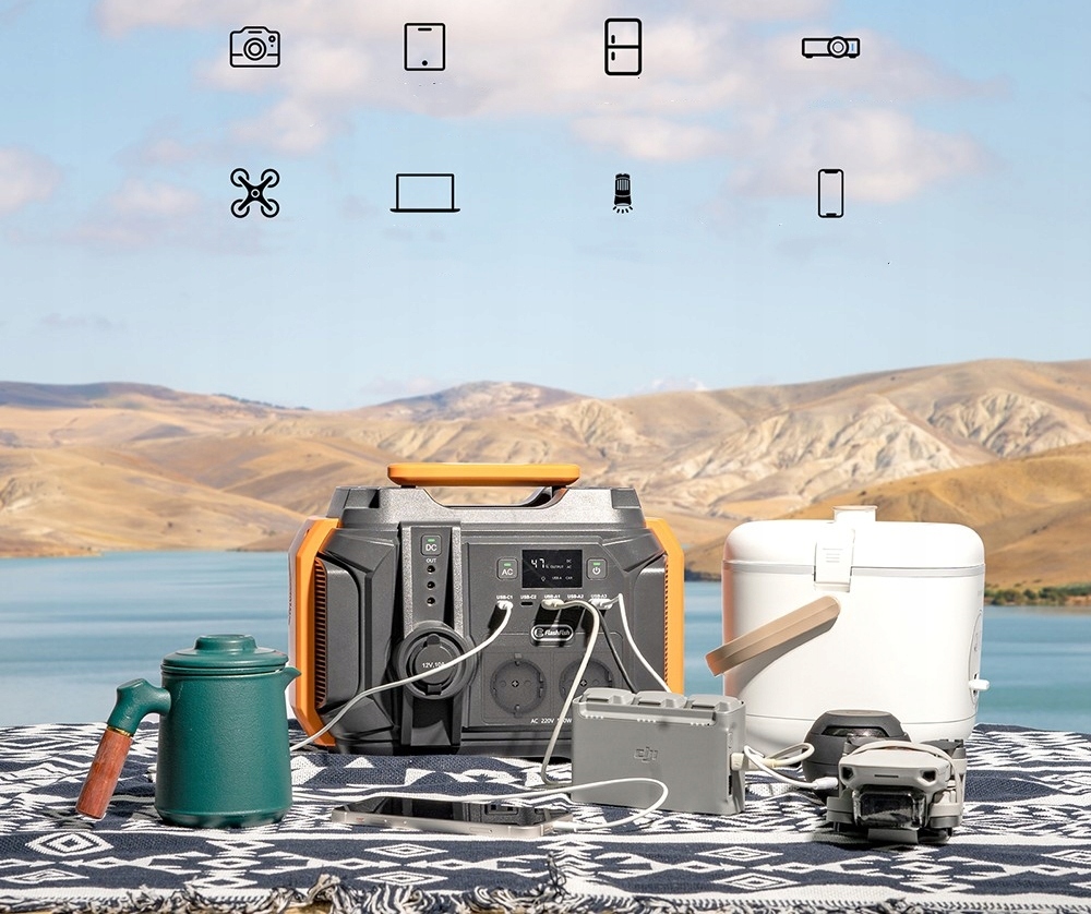 Ця електростанція має 3 способи живлення, включаючи стандартні розетки, автомобільний зарядний пристрій або додаткову сонячну панель (купується окремо). Ця акумуляторна станція ідеально підходить для любителів активного відпочинку, кемперів, будинків на колесах і навіть човнів.