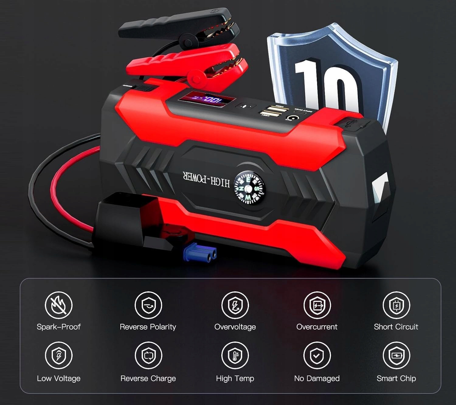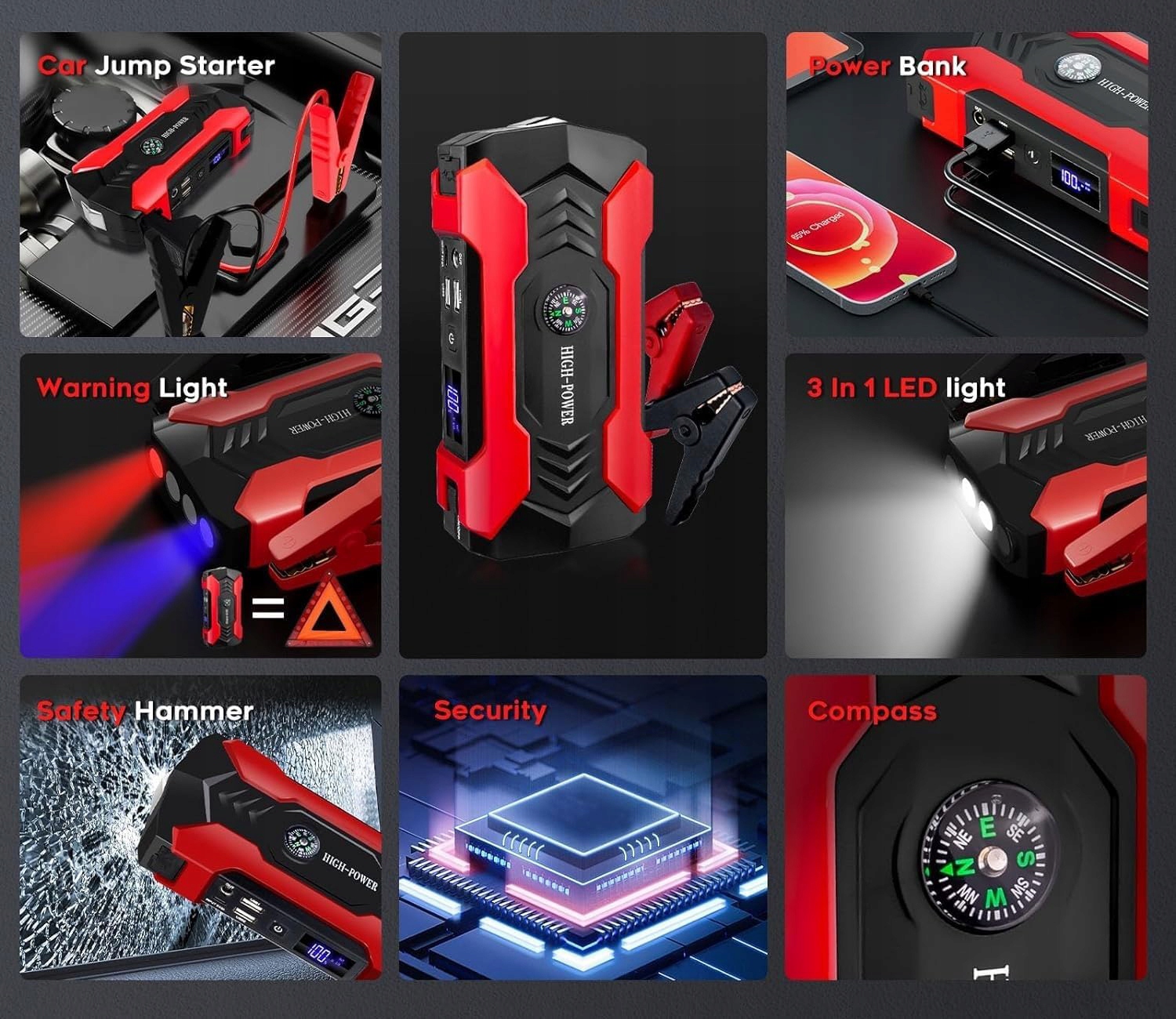 Цей електричний пусковий пристрій забезпечує максимальну потужність 800 А, що дозволяє запускати розряджені батареї за секунди. Оновлена 4-елементна літієва батарея сумісна з автомобілями 12 В, включаючи газові та дизельні двигуни. Підтримує понад 50 запусків на одному заряді, що робить його ідеальним для автомобілів, позашляховиків, газонокосарок, мотоциклів, вантажівок і човнів.