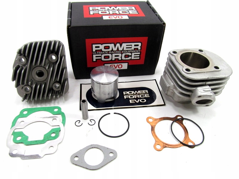 Предметом пропозиції є комплект серії Power Force EVO, який видно на фото, який збільшує потужність приблизно до 70/80 куб.см у скутерах з повітряним охолодженням і горизонтальним двигуном Minarelli.