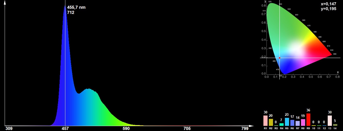 - колірний діапазон - 480nm - 485nm