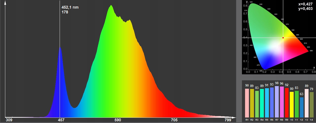 - колірна температура - 3000K - 3200K (*3161K)
