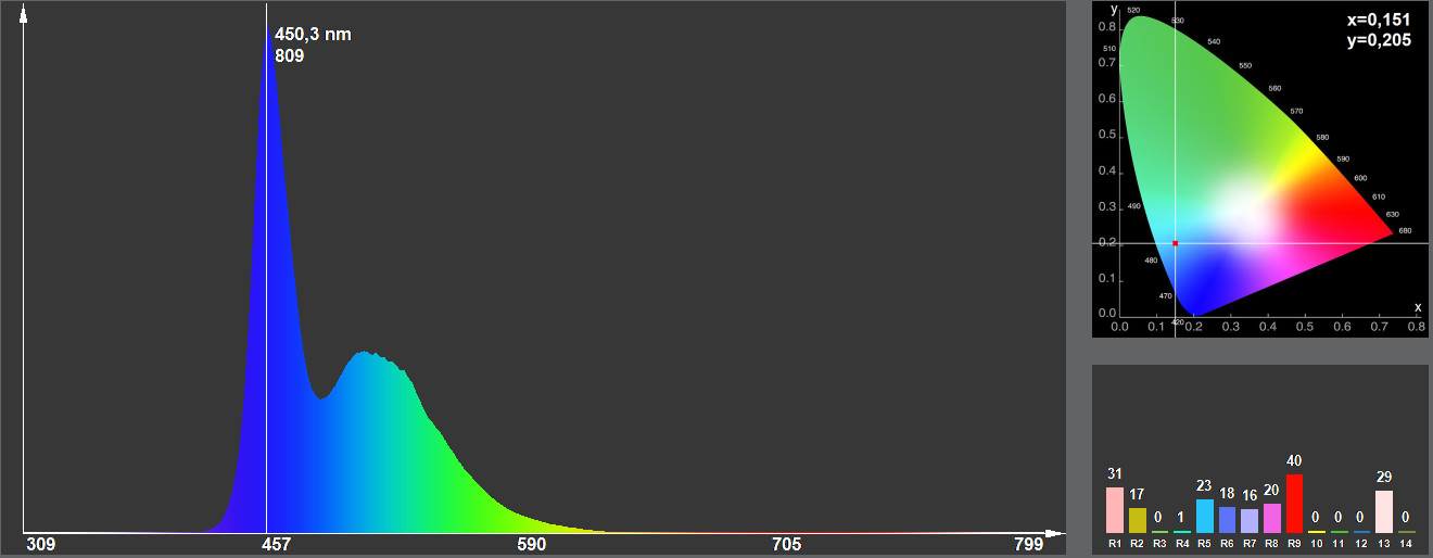 - колірний діапазон - 480nm - 485nm