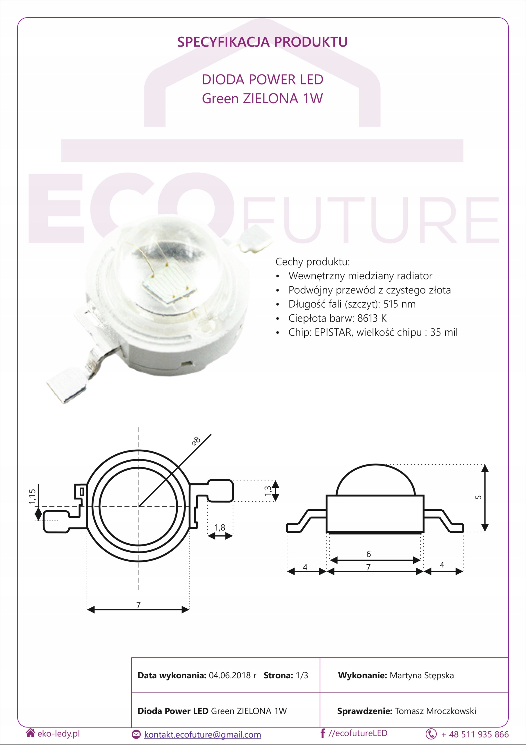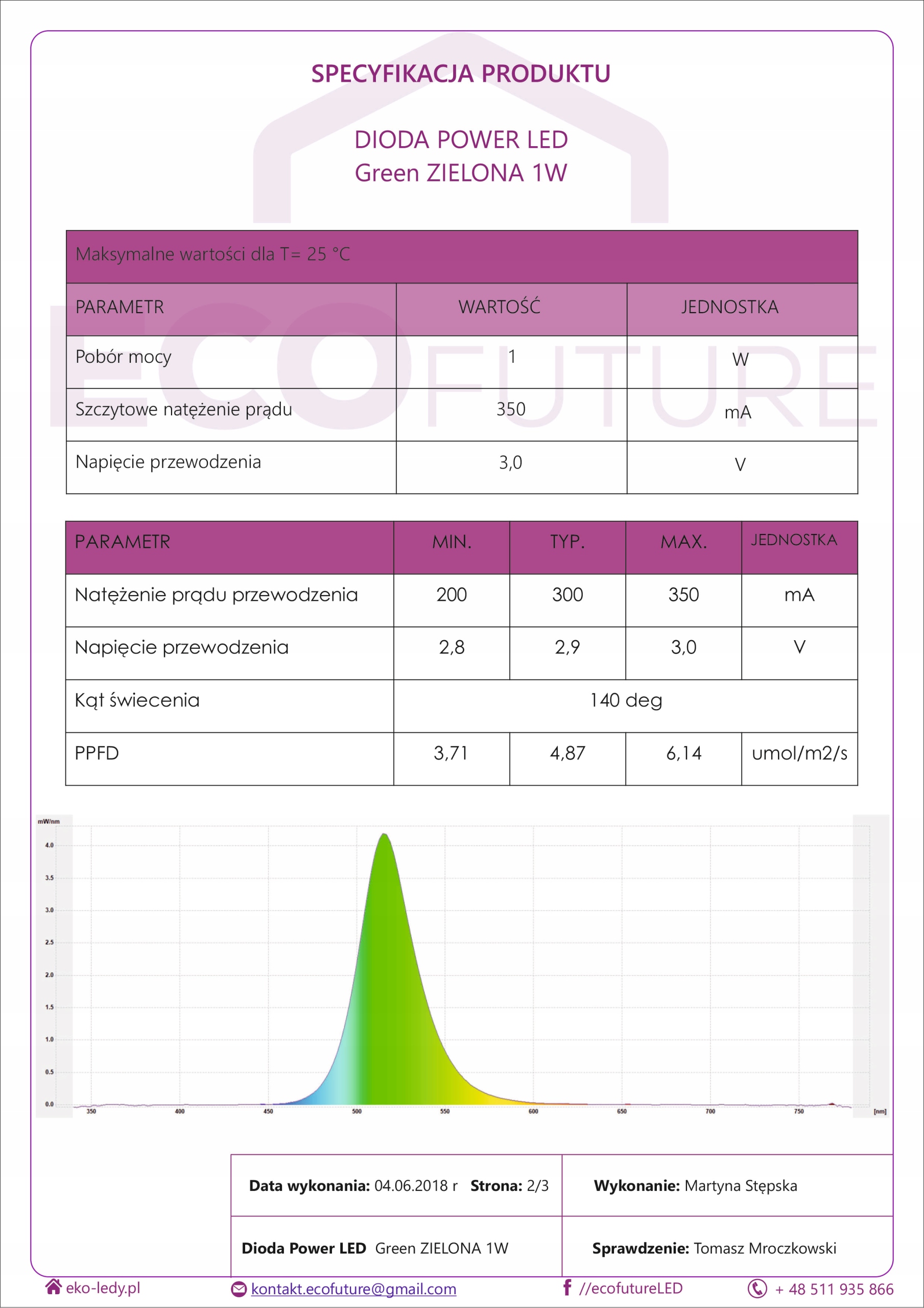 Колірна смуга : 520 - 525 нм (зелений - без використання люмінофора на лінзі)