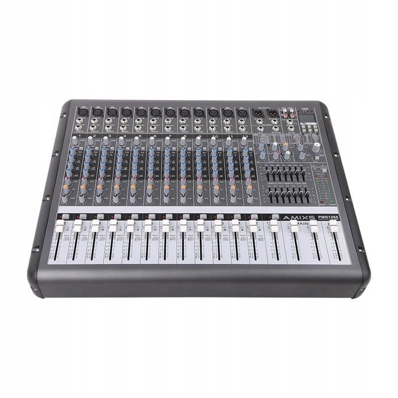 Універсальний потужний мікшер, розроблений для професійних аудіопристроїв. Незалежно від того, чи плануєте ви озвучити концертний тур, невелику зустріч або клубний концерт, чи ви власник звукової компанії, це ідеальне рішення для вас! Завдяки зрозумілому інтерфейсу і зручній панелі підключення користувач може за кілька хвилин інтегрувати потужний мікшер з будь-якою звуковою системою. Вбудований процесор ефектів, USB MP3-плеєр, цифрова система запису сигналу з суми і графічний еквалайзер - це лише деякі з особливостей потужного мікшера, готового до роботи в будь-яких умовах.