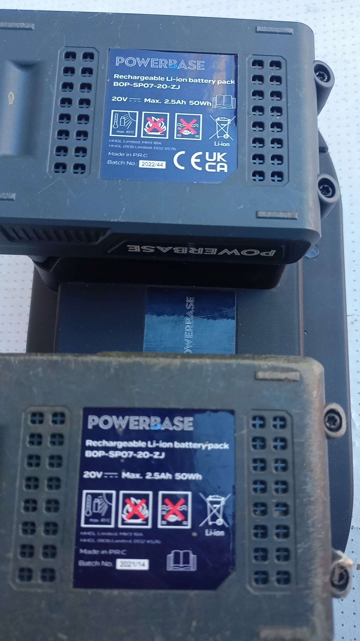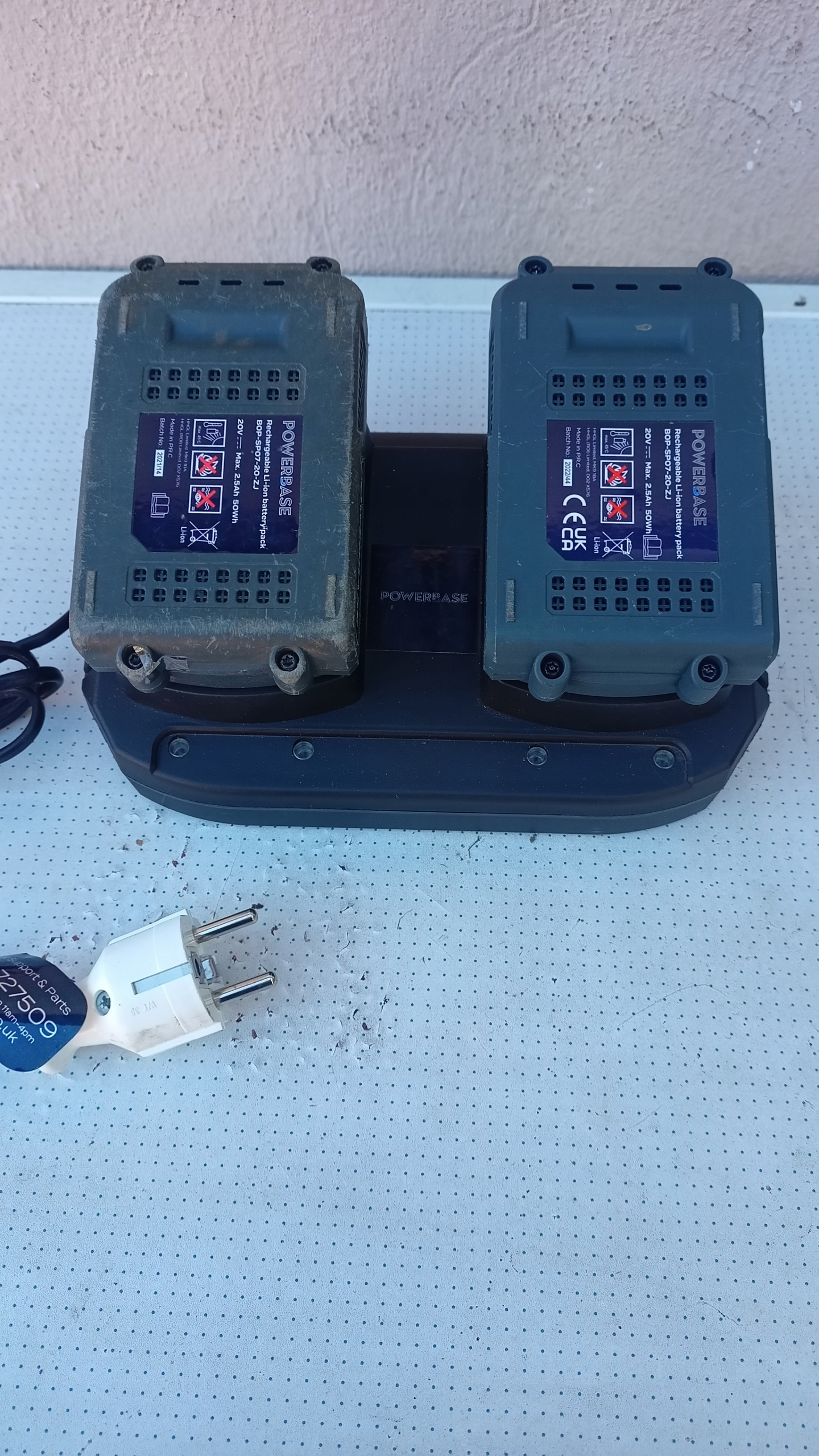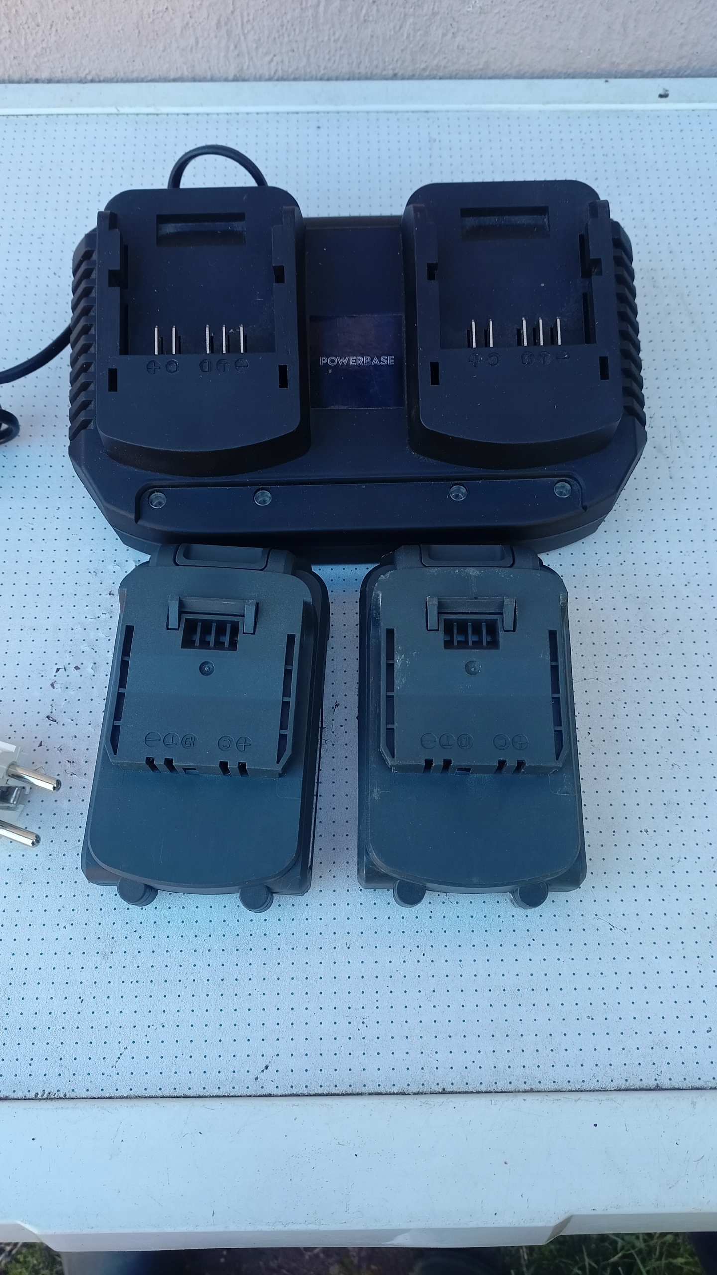 Powerbase дві батареї 2,5 А·год 20 В + ПОДВІЙНИЙ ЗАРЯДНИЙ ПРИСТРІЙ У ХОРОШОМУ СТАНІ ФУНКЦІОНУЄ