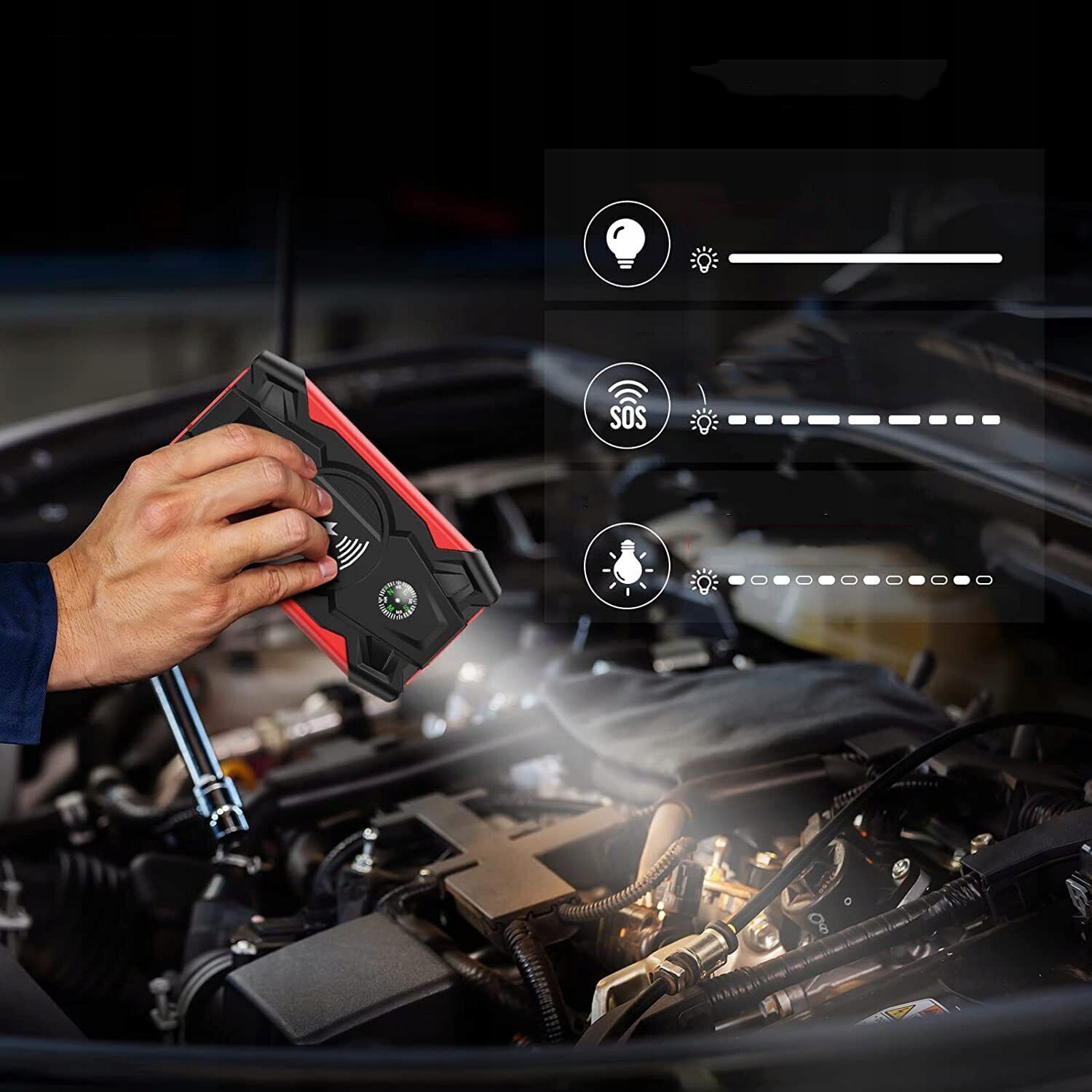 🔥Можна використовувати як аварійне джерело живлення для дизельних і бензинових автомобілів на 12 В, а також підтримує бездротову зарядку мобільних телефонів.
