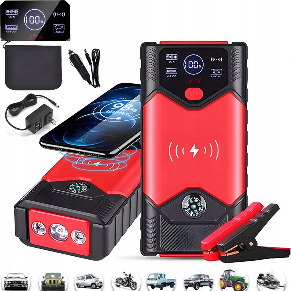 ❤ пристрій для аварійного автомобіля -пристрій, зарядний пристрій автомобіля, портативна батарея стрибків, аварійний світлодіодний світло, дисплея живлення, компас