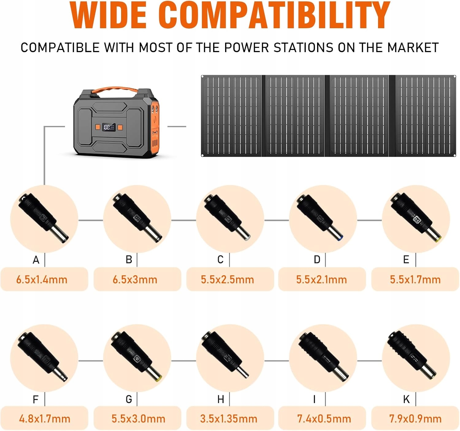 - Гнучка параметри зарядки: портативна електростанція може бути ефективно заряджена за допомогою адаптера стінки змінного струму (15 В/2,4 А) та автомобіля (12 В/2 А). Він також може використовувати максимально екологічну енергію завдяки складеній сонячній панелі з потужністю 40 Вт, а також у випадку раптових відключення електроенергії та пригод на свіжому повітрі. Портативна сонячна панель з потужністю 40 Вт важить лише 1,45 кг, а після складання розмірів лише 36,5 х 20,5 х 4 см.