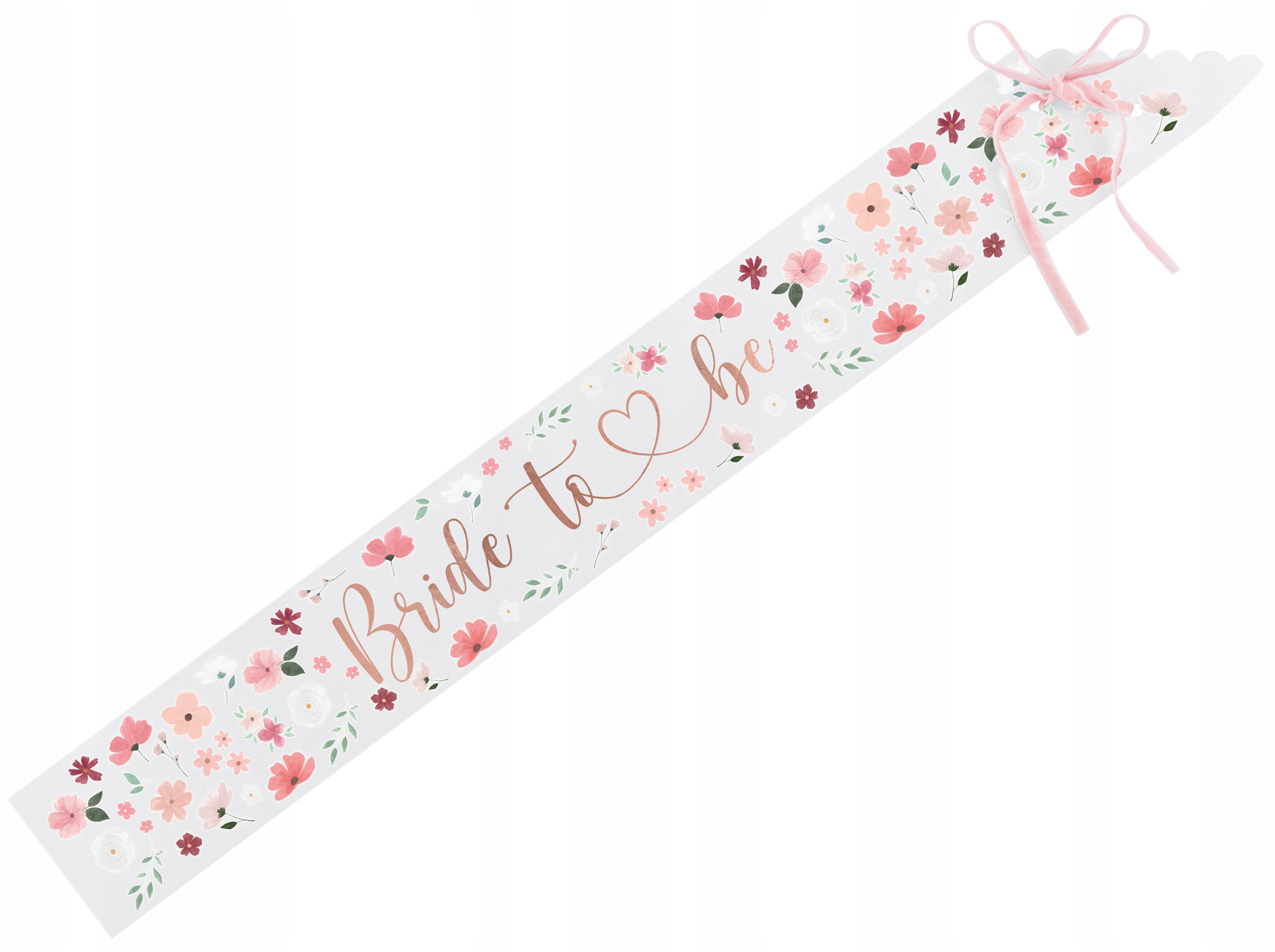 Bride to be папір білого кольору з кольоровим принтом і металізованим написом рожевого золота, ширина приблизно 9, 5 см, довжина приблизно 76 см.