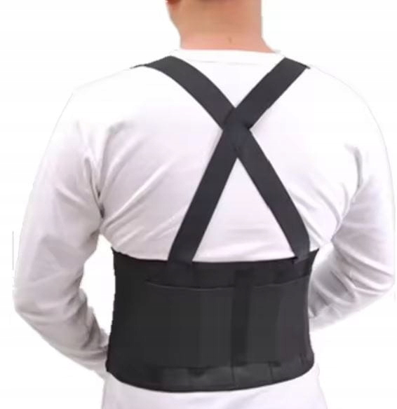 Пояс допоможе розвантажити спину. Дихаючий матеріал. Ремінь збільшує вантажопідйомність. Він індивідуально регулюється за допомогою липучок і плечових ременів. Ідеальний опорний пояс підходить для підняття важких предметів і захищає хребет від травм і зайвого навантаження. Упряж «форсує» правильне положення спини при піднятті тягарів. Пояс забезпечує помірну жорсткість попереково-крижового відділу хребта і передньої черевної стінки у людей, які виконують важкі роботи, а також роботи, пов'язані з підняттям важких предметів. M Можна носити прямо на тілі або нижній білизні, кріпиться за допомогою липучки.