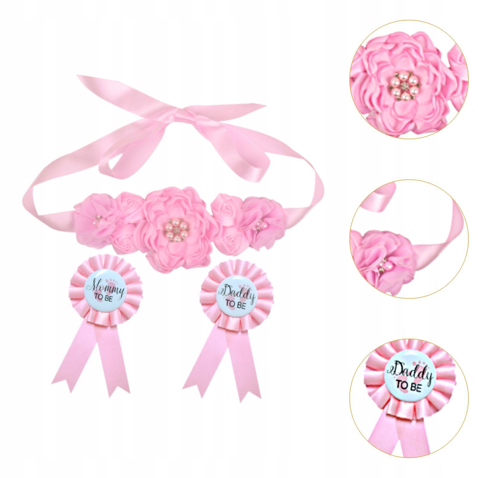 Пояс для вагітних із набіром корсажних шпильок із квітковим візерунком для вечірок із розкриттям статі, рожевий