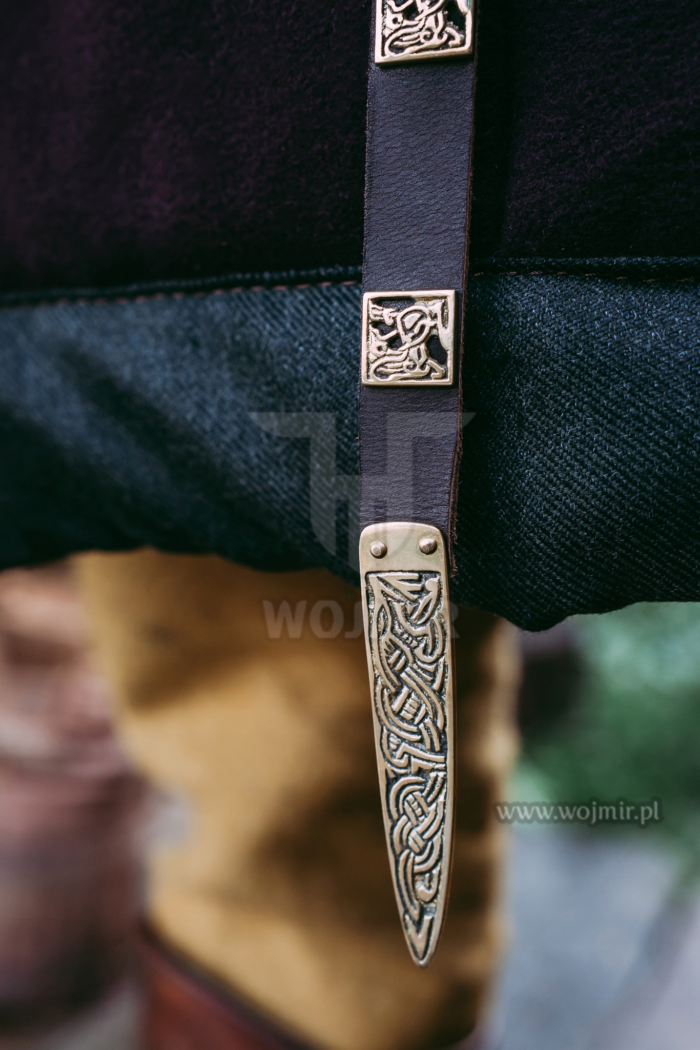 Репліка пояса Birka зі Швеції з могили 1076. Відливки з латуні. Ремінь складається з 26 деталей, включаючи пряжку і кінець ременя. Виготовляється з натуральної повнозернистої волової шкіри, товщиною 3-3,5 мм, довжиною 170-180 см і шириною 2 см стандартно. Якщо бажаєте іншу довжину, пишіть в примітках до замовлення, максимальна довжина 190 см.