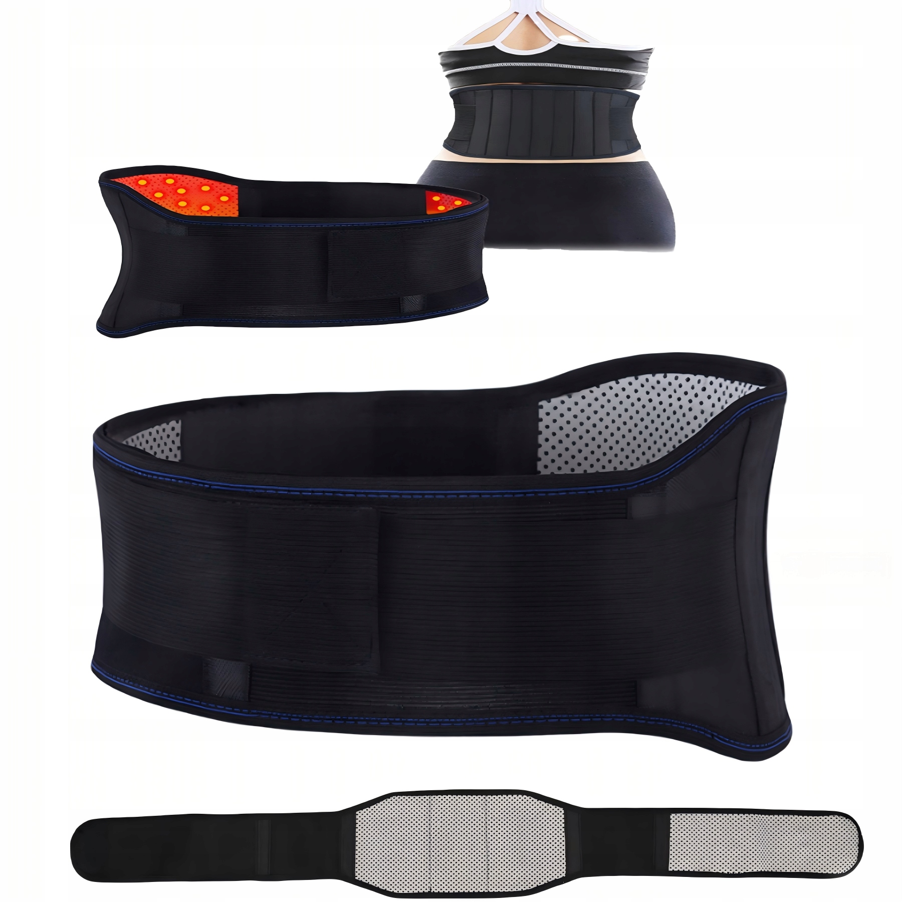 Поперековий пояс з магнітами і турмаліном має 16 вшитих магнітів, покритих турмаліном. 6 магнітів розташовані в передній частині пояса, спрямованої в бік живота, і ще 10 магнітів розташовані в задній частині, спрямованої в бік поперекового пояса. Магнітний пояс стабілізує поперековий відділ хребта, а магніти мають знеболювальну та протизапальну дію, заспокоюють дегенеративні та ревматичні зміни. Крім того, турмалін випромінює природні інфрачервоні хвилі, які покращують кровообіг і обмін речовин, розігрівають м’язи, знімаючи біль. Конструкція пояса обертається, що дозволяє легко надягати та знімати. Універсальний розмір завдяки великим регулюванням за допомогою липучок.