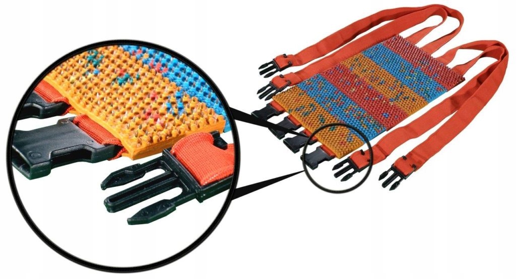 Аплікатор багатоголковий Ляпко-пас "Traveler" 5.8 складається з 6 рухомих пластин b> розміри 5 см х 18 см (кожна плитка) і 4 смуги регулювання. Завдяки своїй конструкції, великим розмірам і гнучким кріпильним ремінцям він ідеально підходить для процедур, що проводяться на великих поверхнях тіла. Чудово діє на попереково-грудний відділ хребта або живіт. Конструкція пояса дозволяє кріпити його на будь-якій ділянці нижньої кінцівки, не обмежуючи фізичне навантаження під час процедури. Додатковою перевагою пояса є можливість використання пояса як килимка - розташувати його на ньому, наприклад, шийним відділом хребта.