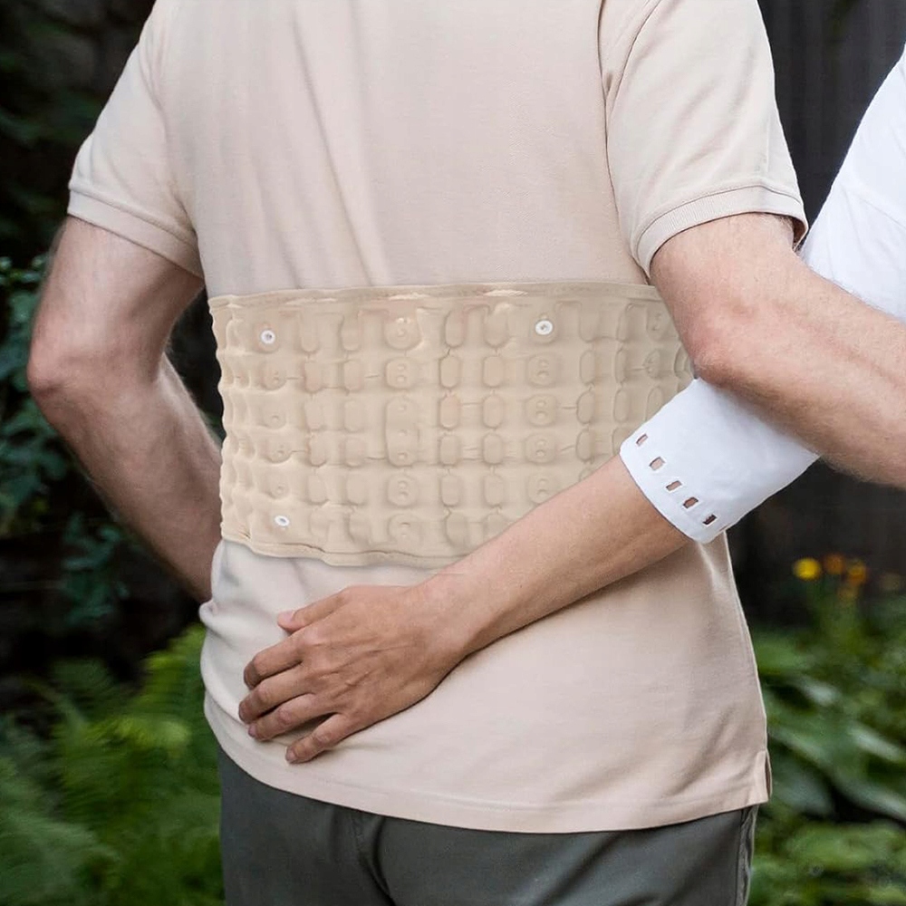 Пояс має кілька повітряних стовпчиків, які, коли їх надувають, обіймають нижню частину талії, створюючи дугоподібний пояс. Забезпечує ефективне полегшення болю в спині, спричиненого дисковою грижею, розтягненням поперекових м’язів, стисненням поперекового нерва тощо.