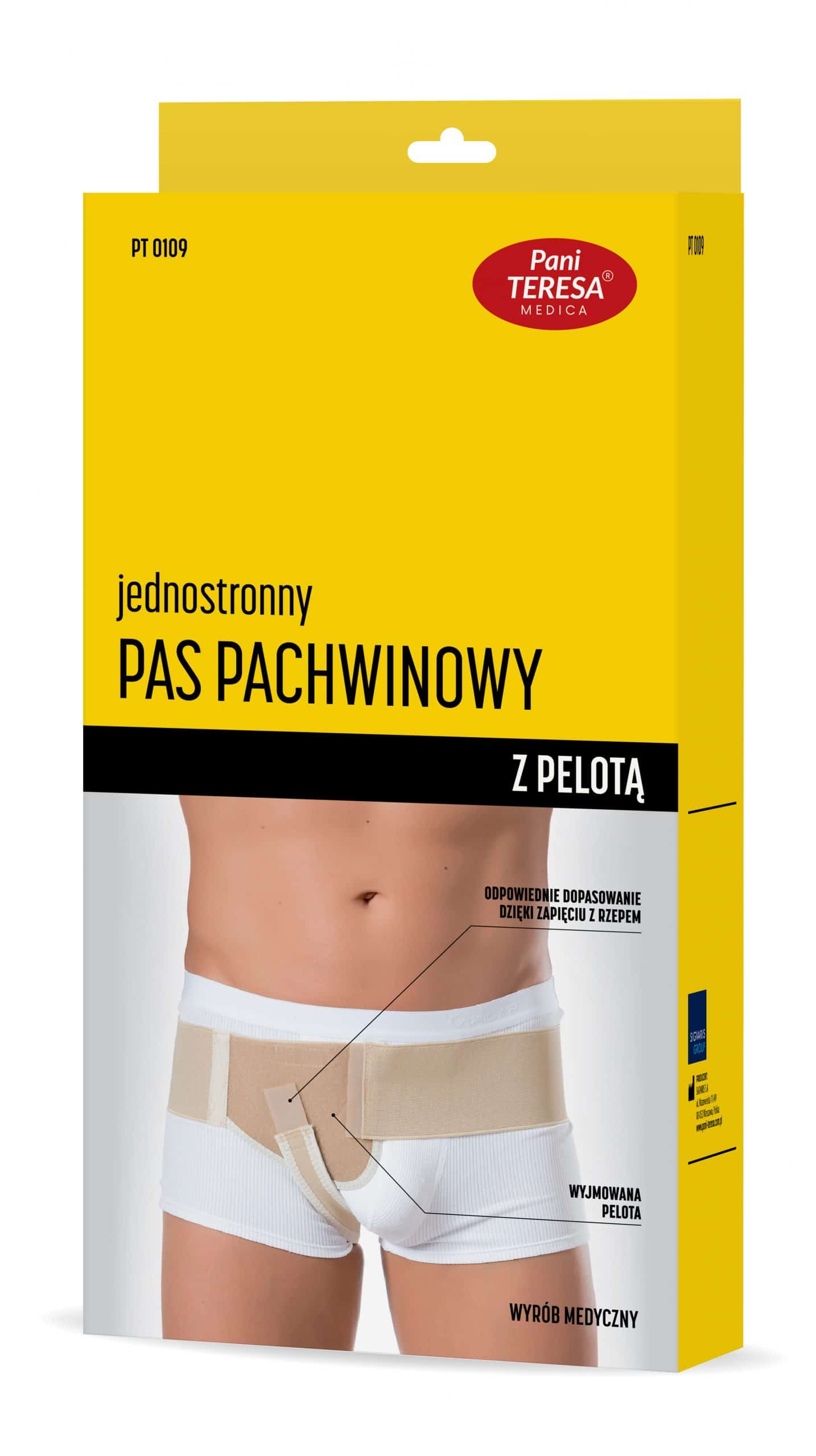 Односторонній паховий пояс з прокладкою - правосторонній або лівосторонній Pani Teresa Medica PT 0109 - медичний виріб багаторазового використання. Ідеально підходить для підтримки процесу лікування та реабілітації при неможливості операції з приводу невеликої пахової грижі, а також як профілактика рецидивів при слабкості опорно-рухового апарату, доступна в право- або лівосторонньому варіантах. Зручна застібка, комфорт використання. Ніжний до шкіри. В наявності бежевий колір і розміри від S-XXL.