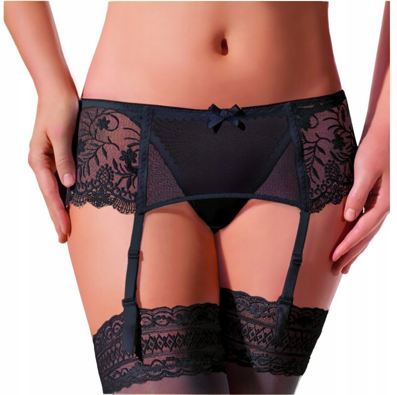 Пояс на підв’язки 032 ● розкішний, ніжний, вишуканої обробки ● ідеально облягає стегна ● з регульованими лямками та двома рядами гачків ● виготовлений із прозорого матеріалу ● прикрашений мереживом із квітковим візерунком ● тонкі вишиті кінці ● невеликий бант додає шику та елегантності ● можливість регулювання робить його ідеальним для кожної жіночої фігури Склад: 89% поліестер, 11% еластан