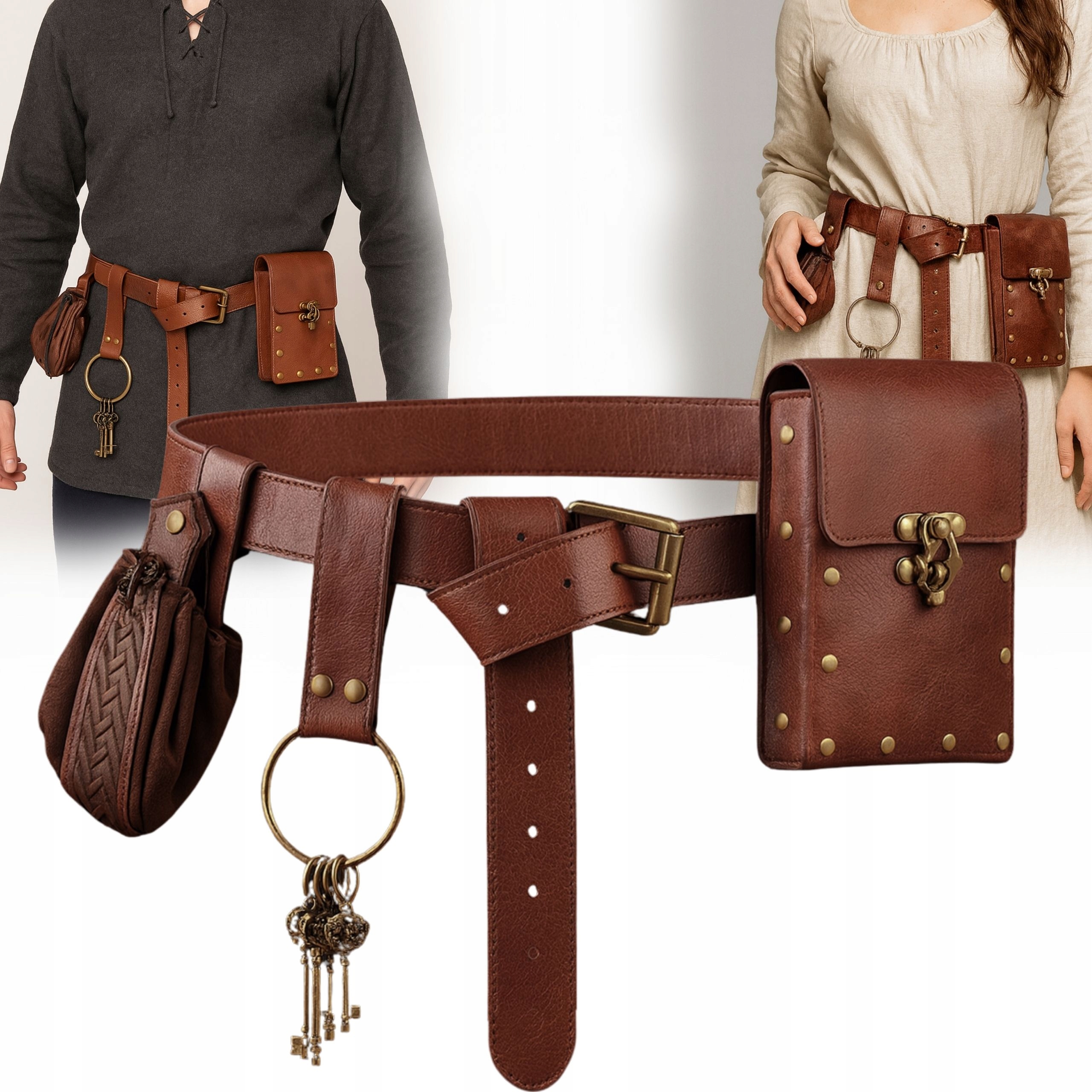 СЕРЕДНЬОВІЧНИЙ ПОЯС ВІКІНГ, ЛИЦАР, ВОЇН, КОСТЮМ, ВІДЬМАК, СТАРОЧНИЙ, КОРИЧНЕВИЙ