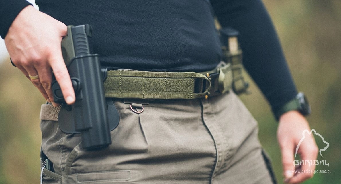 Жорсткий стрілецький ремінь із товстої поліамідної стрічки, що характеризується високою стійкістю до стирання, вицвітання та сколювання, з відомою пряжкою Cobra від AustriAlpin 25 мм мінімального розміру та ваги, і водночас ідентичною міцністю 900 кг порівняно з більшими розмірами, дозволяє всю пряжку пропускати через петлю для ременя в штанах і не обмежує руху при присіданні, нахилі та інших незручних положеннях для стрільби. Це величезна перевага, яка впливає на практичність надягання та зняття пояса, а також на його зручність при носінні, враховуючи повний спектр рухів і активностей.